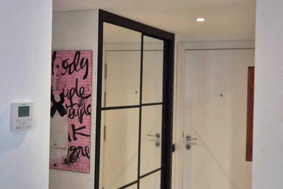 Master Suite: An exceptionally large master bedroom designed without standard wardrobes to maximize space, featuring instead a generous walk-in closet with a large mirror.