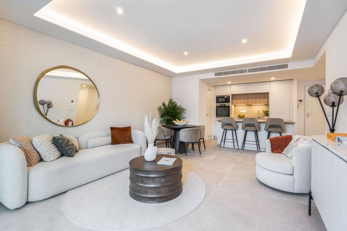 Located in a prestigious area of the Costa del Sol, Fuengirola just 20 minutes drive from Malaga airport to the east and Marbella center to the west. 100 meters from the beach, in the city center surrounded by all kinds of services and shops. 2 and 3-bedroom apartments with the highest quality finishes, open and bright spaces with large terraces and private gardens. The residential offers excellent common areas to enjoy a comfortable and relaxed lifestyle: coworking, gym, outdoor swimming pools for children and adults, complete spa with indoor pool, sauna and Jacuzzi, cinema room and gastro bar. Covered garage and storage room included in the sale price.