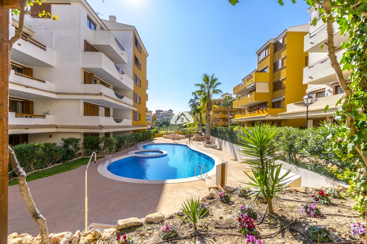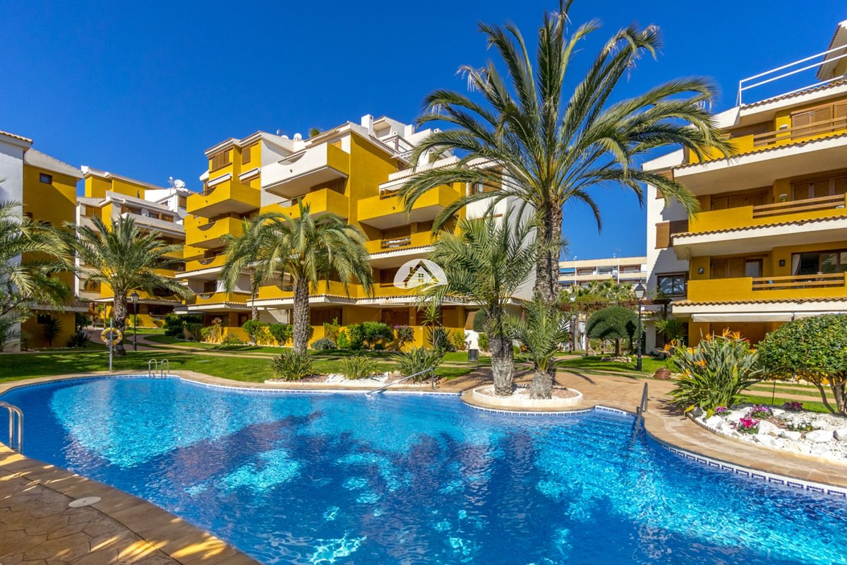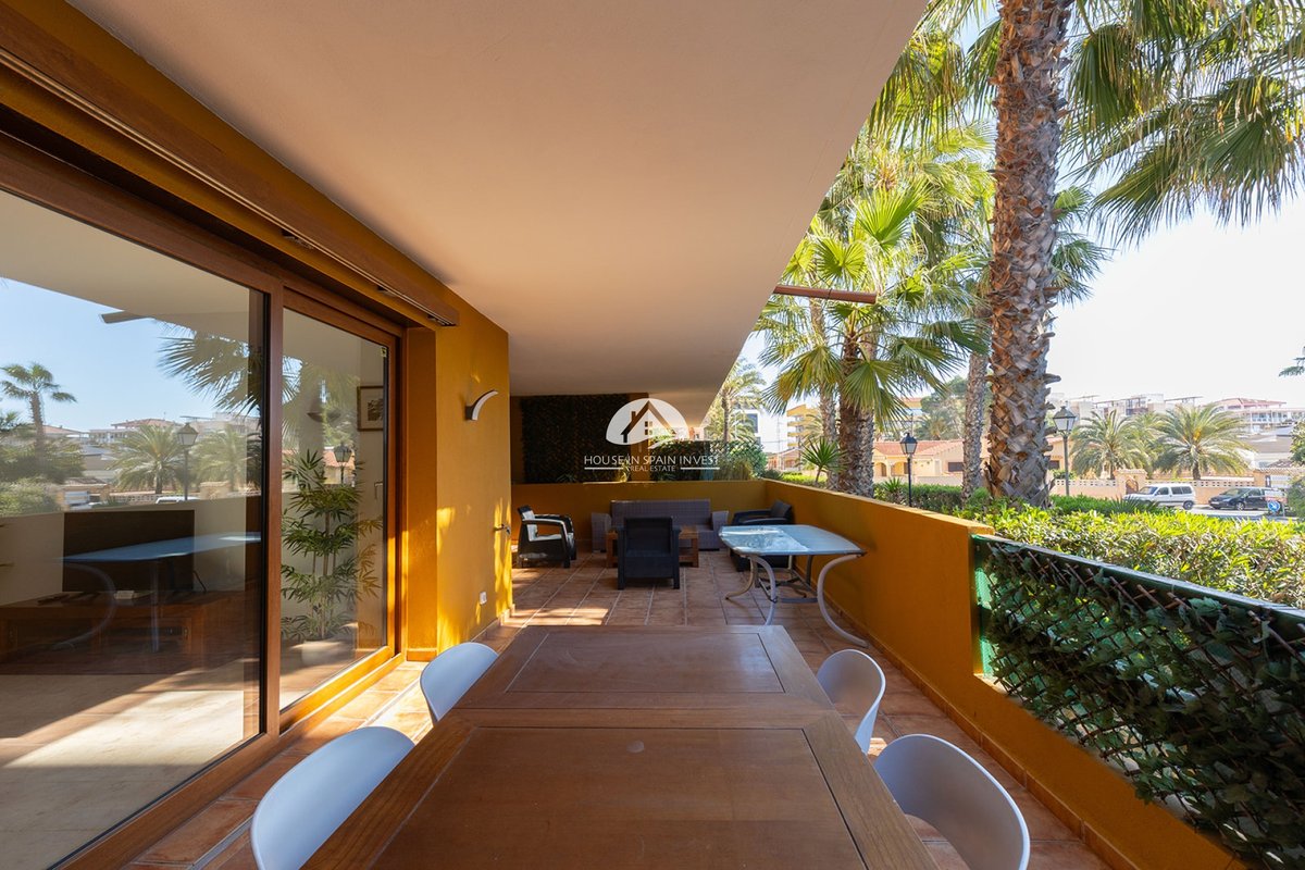 This ground-floor apartment in the La Entrada residential complex in Punta Prima offers 128 sqm of built area with a highly functional layout: two bedrooms, two bathrooms, an independent kitchen, and a spacious living room. Its main highlight is the expansive 40 sqm terrace, a generous outdoor space ideal for enjoying the Mediterranean climate.The property is located in an exclusive gated community with 24-hour security. Its premium facilities significantly enhance the property's value, featuring lush green areas with natural grass and three communal swimming pools, including a heated pool that ensures year-round swimming.Its location is strategic: only 300 meters from the beach. Punta Prima is a fully consolidated area with all essential services, restaurants, and the Punta Marina shopping center within walking distance. A 5-minute drive takes you to the Zenia Boulevard mall and the Torrevieja Hospital. For golf enthusiasts, courses like Villamartín are just 10 minutes away. Furthermore, Alicante Airport is approximately 45 minutes away, guaranteeing excellent international connectivity.