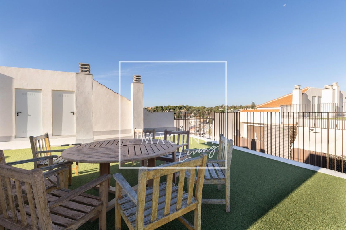 Were you looking for a cozy home with relaxing views in a quiet area? Discover this magnificent, almost-new apartment in Sant Joan d'Alacant, just steps away from parks and all essential services.This is the perfect home for those seeking a bright, comfortable, and relaxing space. Located on the second and top floor of a cozy residential complex built in 2020, the apartment offers 4 bedrooms, 2 bathrooms (one en-suite with a bathtub), a semi-open kitchen, terraces, and more.The living-dining room, with views of the terrace, is a serene and pleasant space, ideal for hosting guests.The kitchen is linear and spacious, fully equipped, and partially integrated into the living area thanks to a practical peninsula with stools, giving a surprising sense of spaciousness.One of the unique features of this property is its unobstructed views of the surrounding parks. The sunsets over the horizon are simply stunning. The terrace, which visually integrates with the home, is a spot where you can enjoy those beautiful sunsets.The property boasts high-quality finishes: reinforced front door, fully equipped kitchen, complete ducted air conditioning with AirZone, motorized blinds, awnings, smooth walls, aluminum-framed double-glazed windows (Climalit type), white lacquered interior doors, and laminate flooring.The sale price also includes two spacious parking spaces located right in front of the elevator access, as well as a storage room.The complex offers an adult swimming pool, a children's pool, open areas for play or relaxation, and a fabulous solarium with a barbecue area and scenic views.Highlights:Location: Situated in a quiet residential area, just steps from supermarkets, cafés, libraries, and all services in San Juan de Alicante.Comfort: With its spacious layout, this home is very comfortable. Additionally, it includes two parking spaces and a storage room.Views: Located in an open area surrounded by parks, the property offers pleasant, unobstructed views.Nearby Points of Interest: Various services, including Aldi and Día supermarkets, a bus stop a few minutes away, a municipal library, cultural center, outdoor sports areas, and the center of Sant Joan. San Juan Beach and Muchavista Beach are less than 3.5 km away.Property Expenses:Property tax: €/yearCommunity fees: €/yearAt Magenta Living, we would be delighted to show you this property. Contact us and discover it before anyone else!
