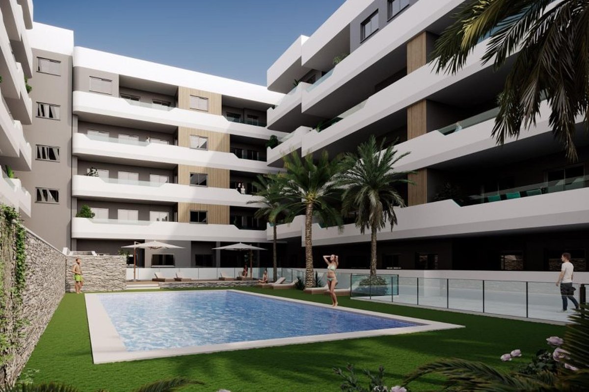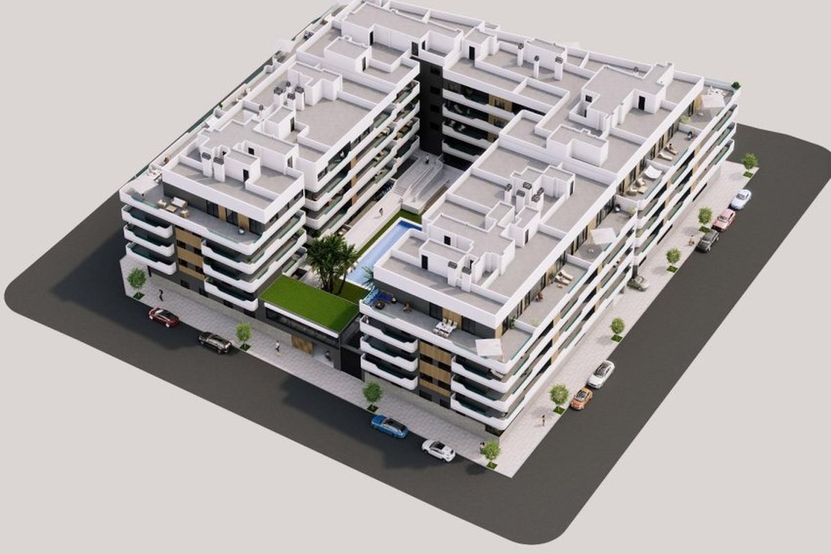 Located in the charming town of Santa Pola, this residential complex offers a variety of housing options to suit different needs and lifestyles. With a total of 128 units, future residents can choose from apartments, ground floors, and penthouses, each designed to maximize comfort and functionality. The proximity to the sea, just 0.7 km away, allows for enjoying the sea breeze and pleasant beach walks. Additionally, the proximity to the airport, just 13 km away, facilitates travel for frequent flyers.OUTDOOR AREASThe exterior environment of the residential complex is designed to offer a space of tranquility and enjoyment. The landscaped areas provide a natural and relaxing atmosphere, ideal for walking or simply enjoying the outdoors. The community features a swimming pool, perfect for cooling off during warm summer days, and a communal gym that allows for maintaining an active lifestyle without leaving the complex. Additionally, both the garage and communal parking ensure that vehicles are always secure and accessible.INDOOR AREASThe homes are equipped with features that guarantee comfort and modernity. The porcelain stoneware floors add an elegant touch and are easy to maintain. The pre-installation of air conditioning ensures that the indoor climate is always appropriate. Built-in wardrobes offer efficient storage, while the included appliances make daily life easier. Security is enhanced with a video intercom, and the option of a garage and parking adds an extra layer of convenience. Terraces and solariums available in some types allow for enjoying views and outdoor moments in the privacy of the home.COMMON AREASThe common areas of the residential complex are designed to promote the coexistence and well-being of all residents. The landscaped areas offer a green space to relax and enjoy the natural surroundings. The communal swimming pool is ideal for cooling off and socializing during the warmer months. The communal gym allows residents to stay active and healthy without having to leave the complex. Additionally, the garage and communal parking ensure that vehicles are always protected and accessible.SANTA POLASanta Pola, on the Costa Blanca, is renowned for its fine sandy beaches and fishing port. This coastal destination attracts tourists for its seascapes, water activities and rich historical heritage. Tourism in Santa Pola focuses on its beaches, such as Playa de Levante or Playa de Tamarit, ideal for enjoying the sun and water activities such as windsurfing and kitesurfing. Its port is an emblematic place, offering boat trips and restaurants with fresh seafood. The lifestyle in Santa Pola is relaxed and linked to the sea. The inhabitants enjoy a coastal life, participating in fishing, nautical activities and celebrating local festivities. Santa Pola offers a beach and fishing atmosphere for those looking to enjoy the sea, fishing traditions and a relaxed life on the Mediterranean coast of the province of Alicante.