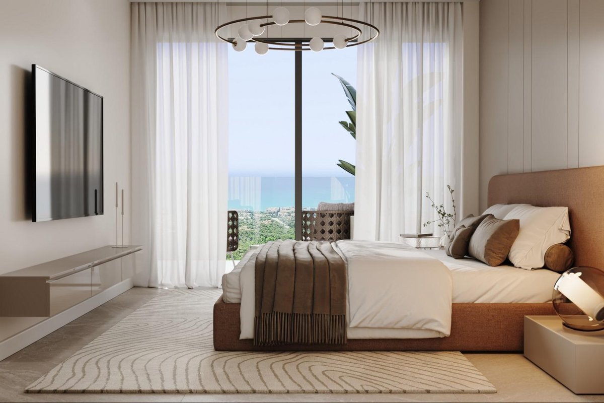 Discover an extraordinary new residential development in Buenavista, Mijas, just minutes from the golden beaches and vibrant coastline of the Costa del Sol. This exclusive gated community features 105 luxury apartments and penthouses, as well as 14 garden villas and 14 sky villas, all offering breathtaking panoramic sea views from every home. Designed for those who value tranquility, sophistication, and Mediterranean elegance, these residences combine cutting-edge architecture with natural surroundings.