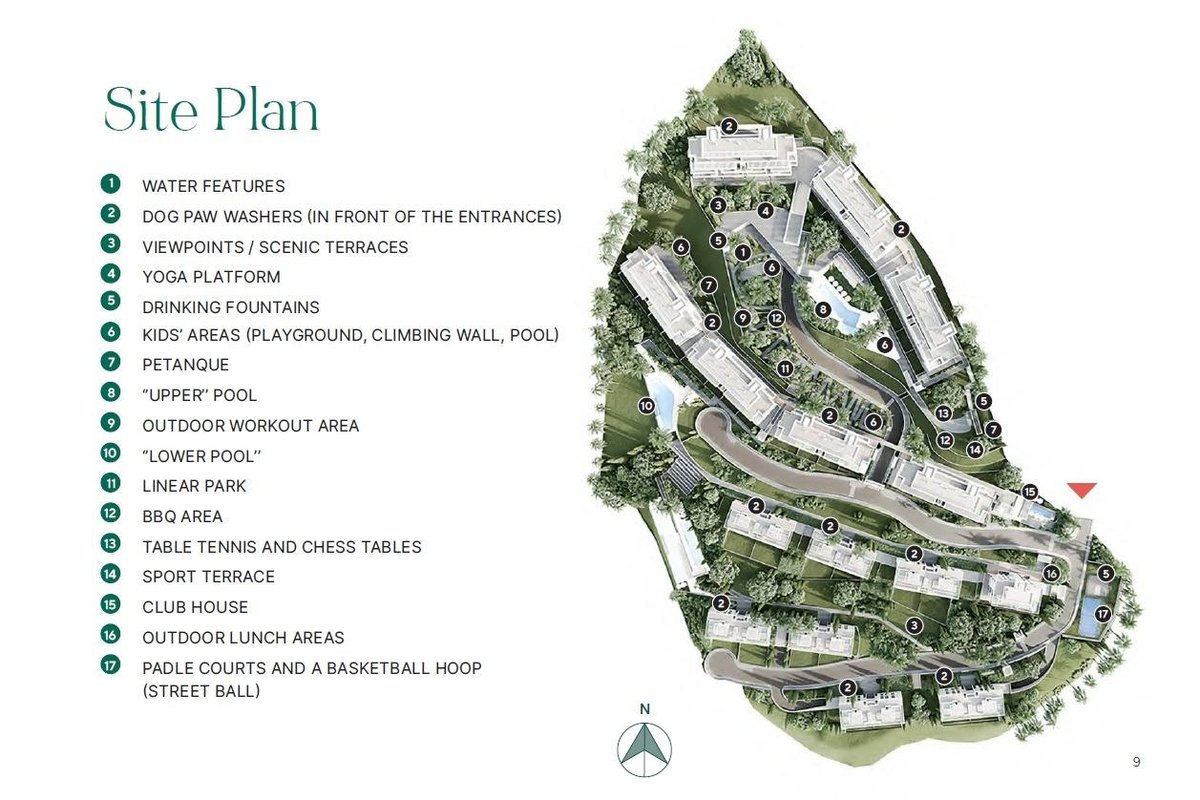 Residents enjoy access to first-class amenities designed for well-being and leisure. The gated complex includes beautifully landscaped gardens with walking paths, panoramic outdoor pools, indoor heated pool, fitness and wellness center, children’s play areas, coworking spaces, and social lounges. Every detail has been designed to create an atmosphere where relaxation, productivity, and recreation blend seamlessly.