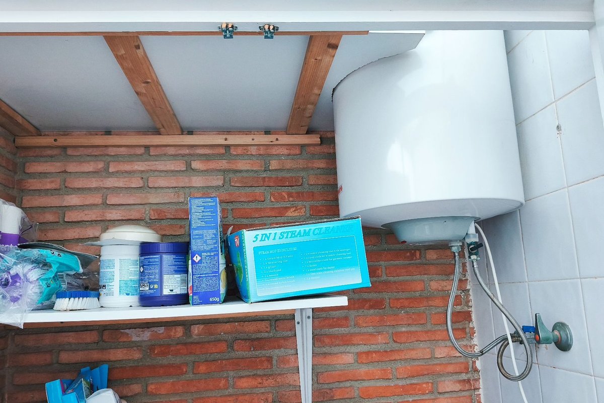 The master bedroom includes air conditioning and an en-suite bathroom, while the second bedroom is ideal for guests or family. A separate laundry/storage room provides additional practicality and space.