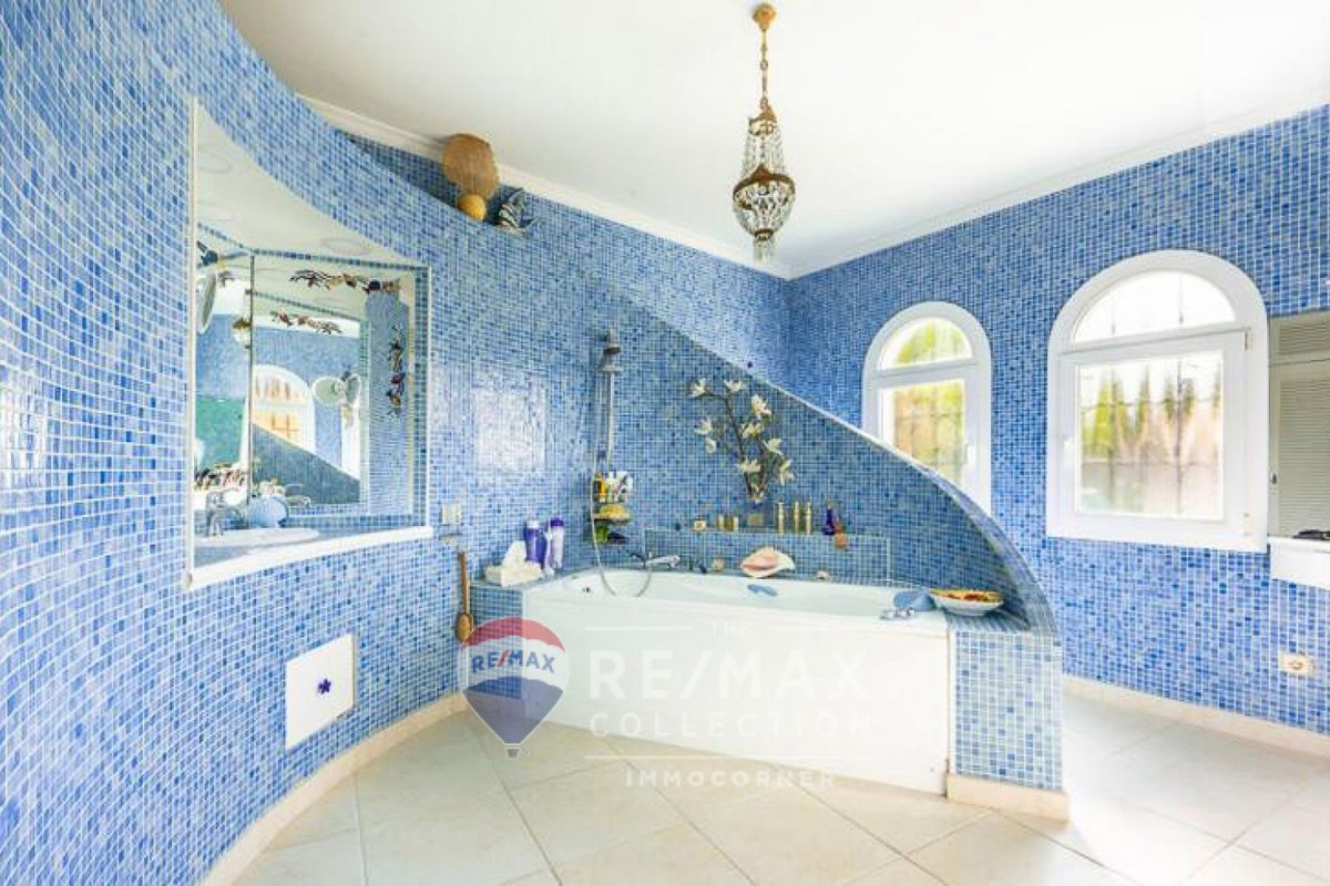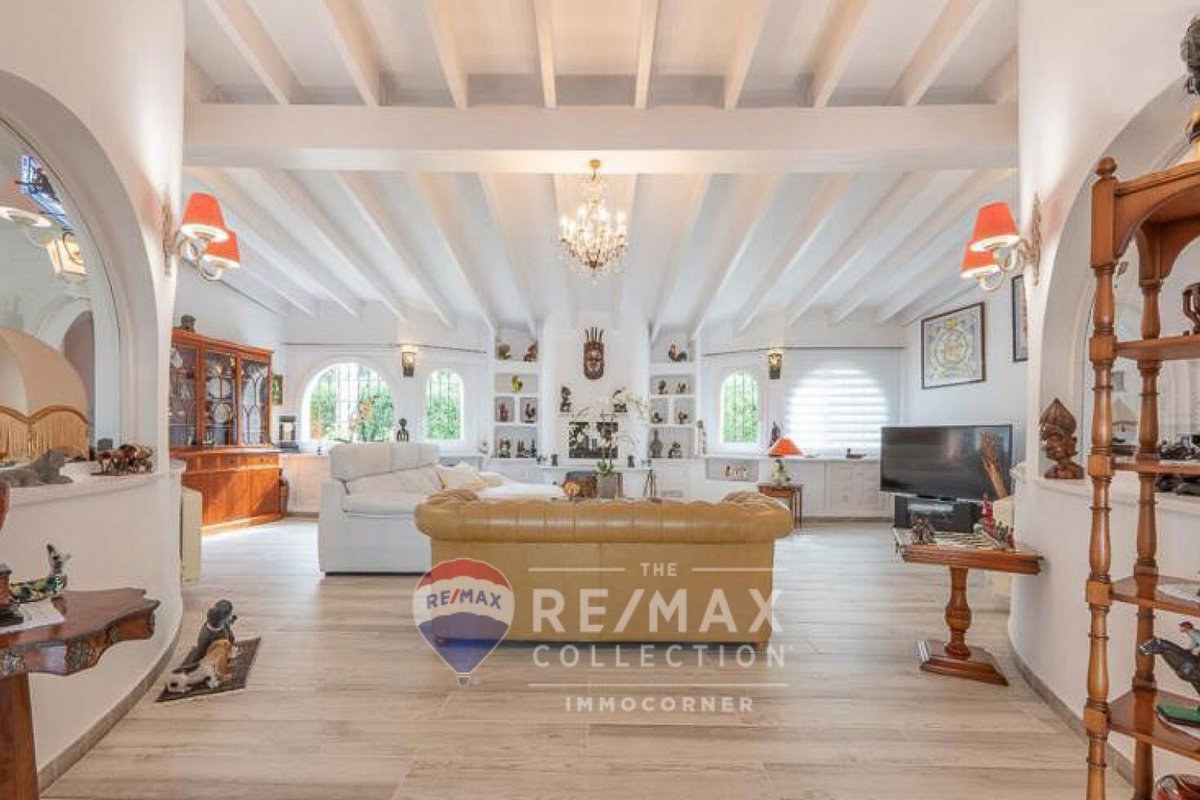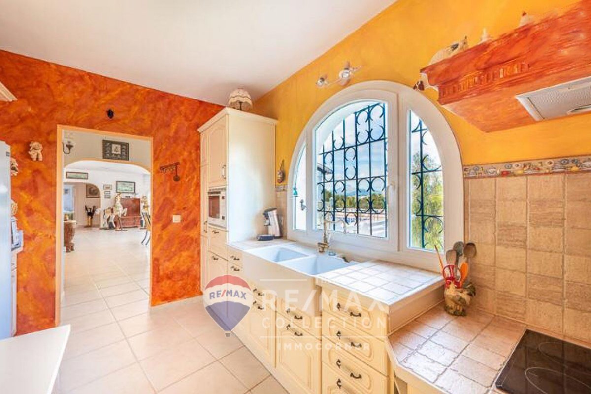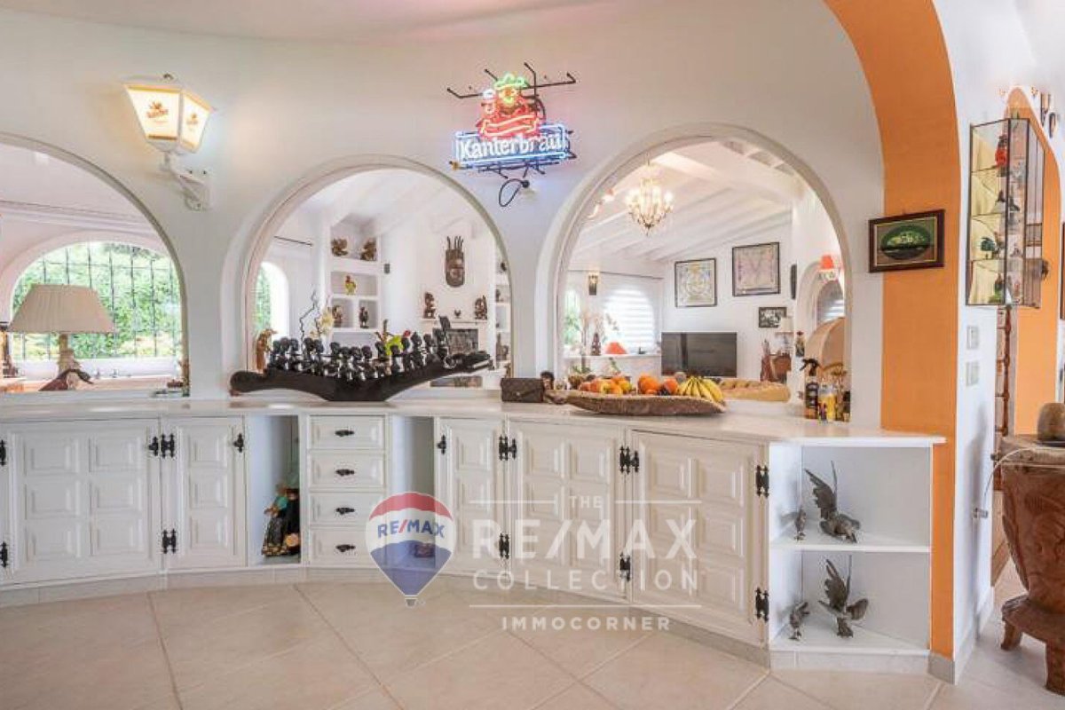 Bright 264m2 villa with garden, terraces with porch and pool in Nova Santa Ponsa. It is on one floor and offers fantastic views of the Sierra de Tramuntana. The main features include: living room with fireplace, spacious dining room with access to the terrace, independent equipped kitchen, 4 bedrooms, 4 bathrooms (3 ensuite) and fitted wardrobes. The property is equipped with air conditioning and garage. It should be noted that there is the possibility of expanding the house by building an additional floor.~