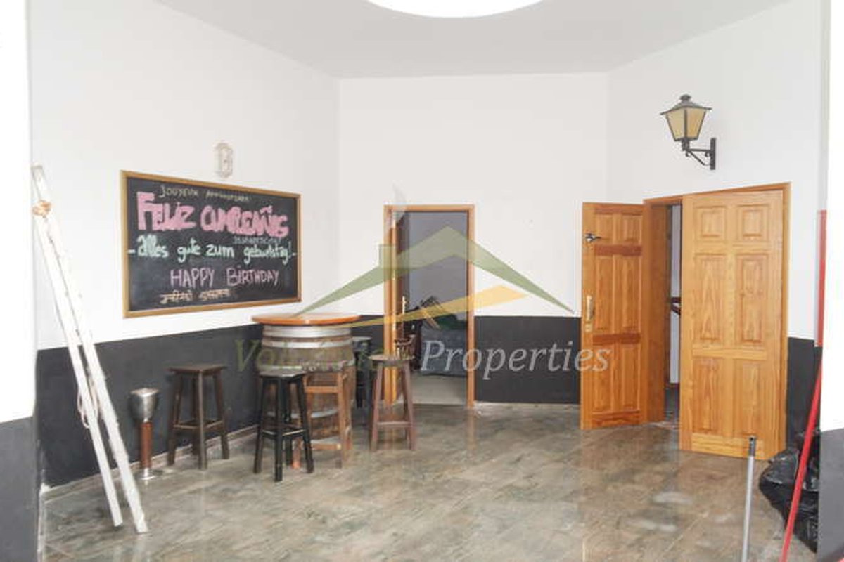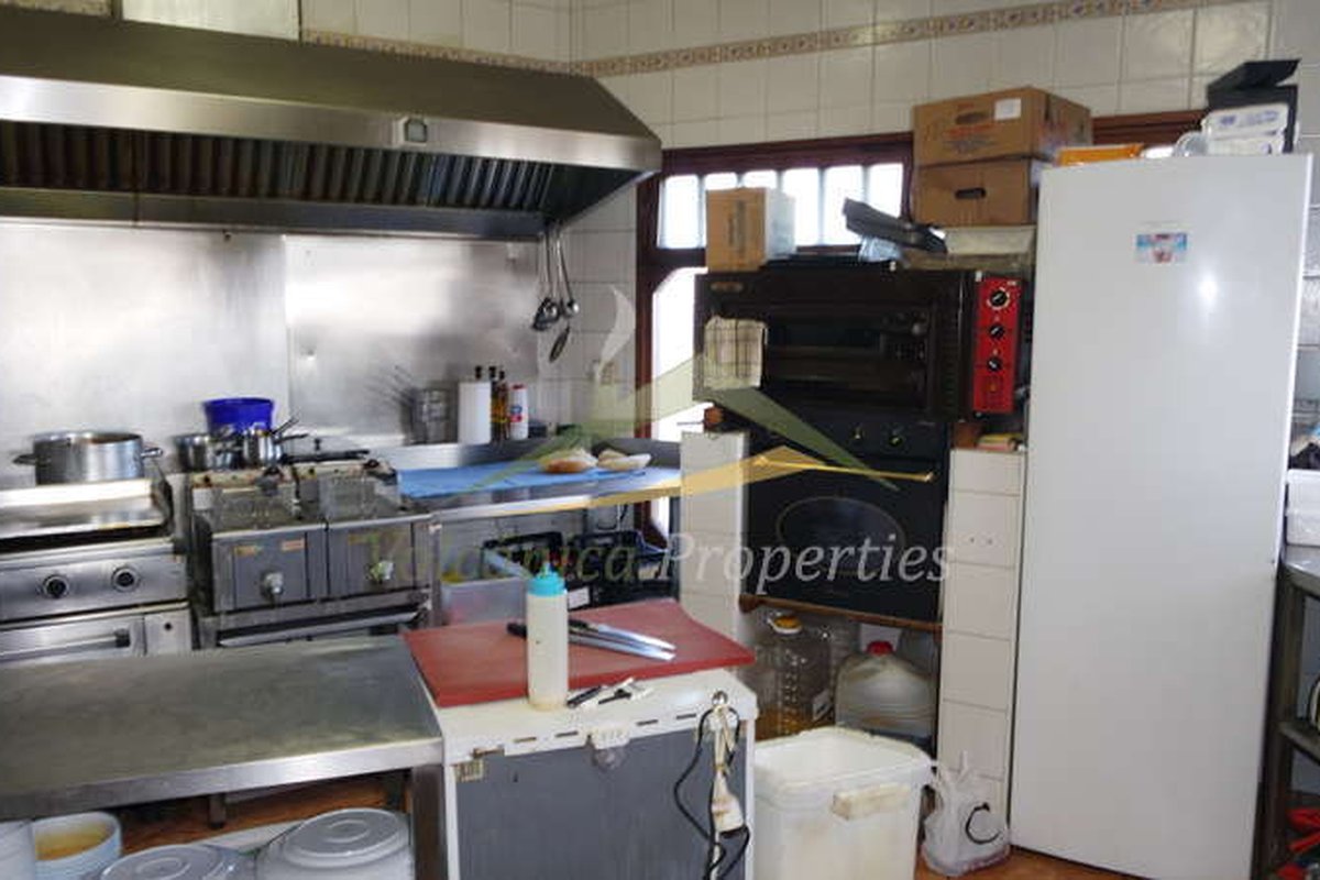 The main floor has a built area of 224m2. The communal reception room is circular with a high ceiling, lots of natural light, a seating area and toilet facilities. This floor currently houses a supermarket with a stockroom and separate outside delivery entrance. A boutique with lots of natural light. 2 smaller locals each with basins. A spacious office with 2 large windows facing out to the parking area. A cafeteria with additional seating area in the adjacent indoor courtyard. A lovely pub with an outside terrace with sea views, bolas court, covered seating area, toilets, storage, bottle and motor room. There is a spacious dining and bar area inside with an ample kitchen.