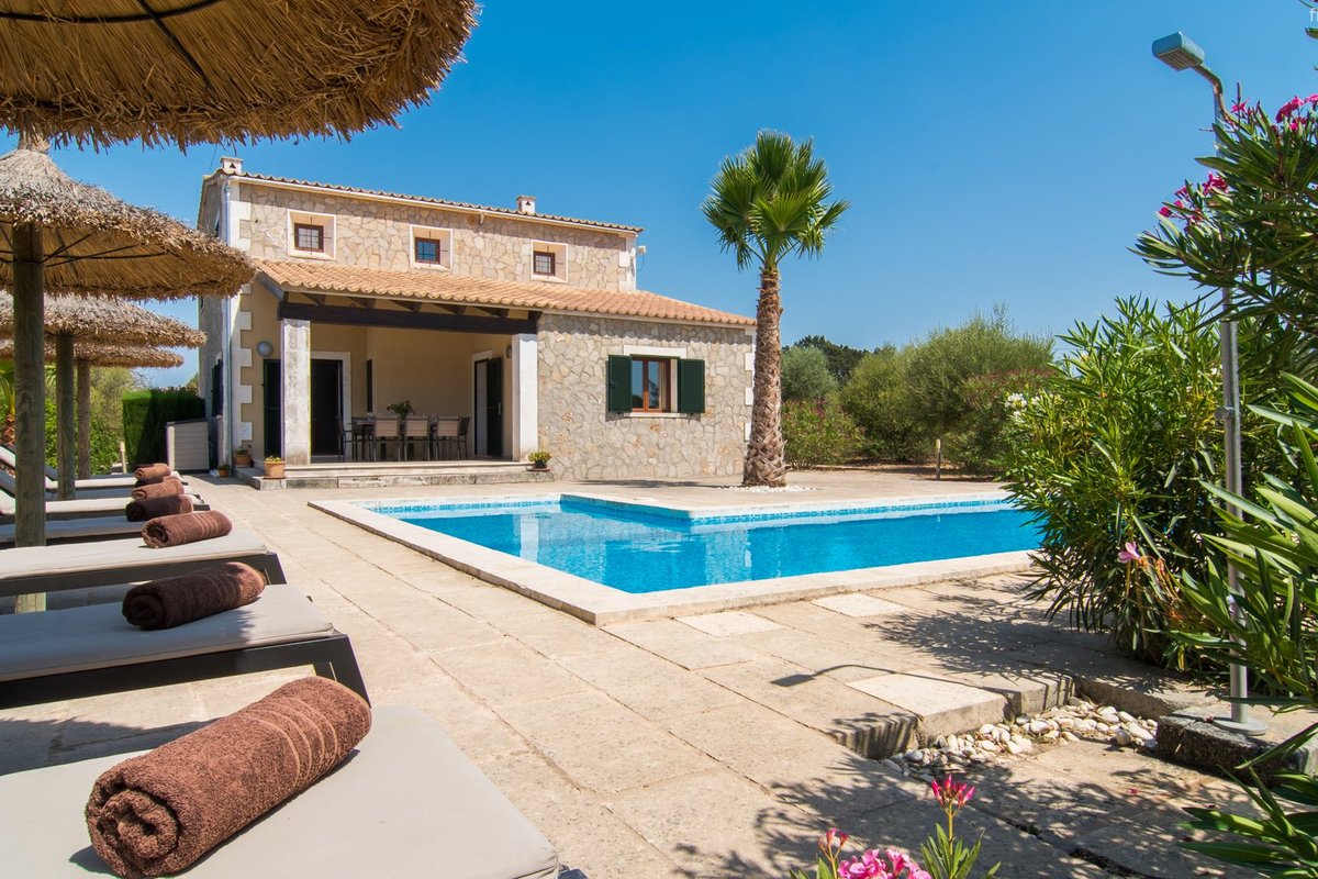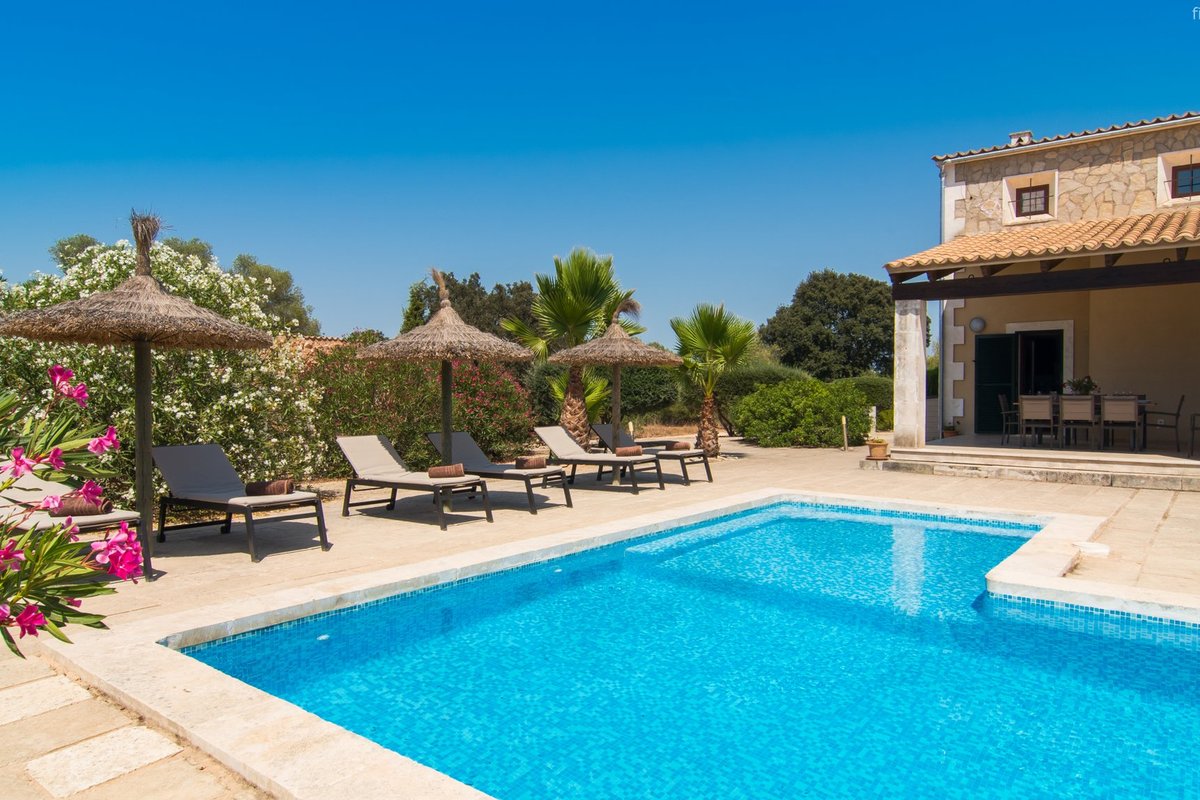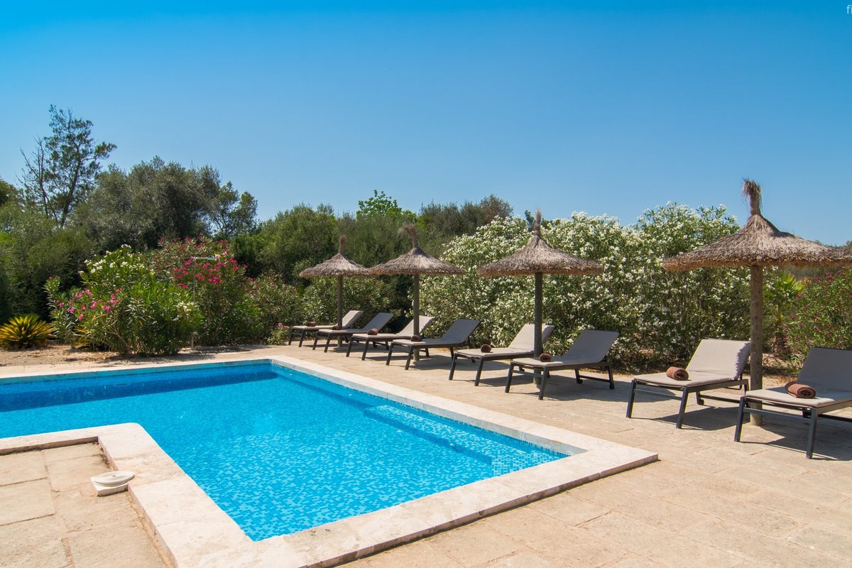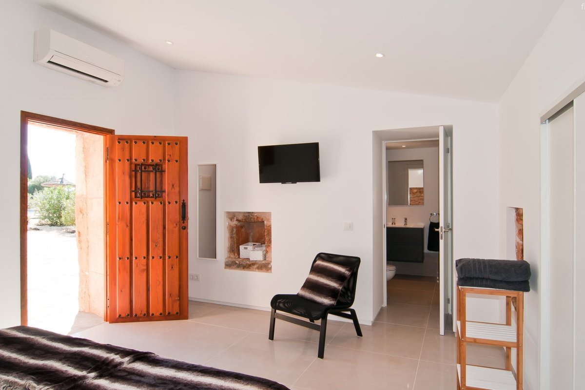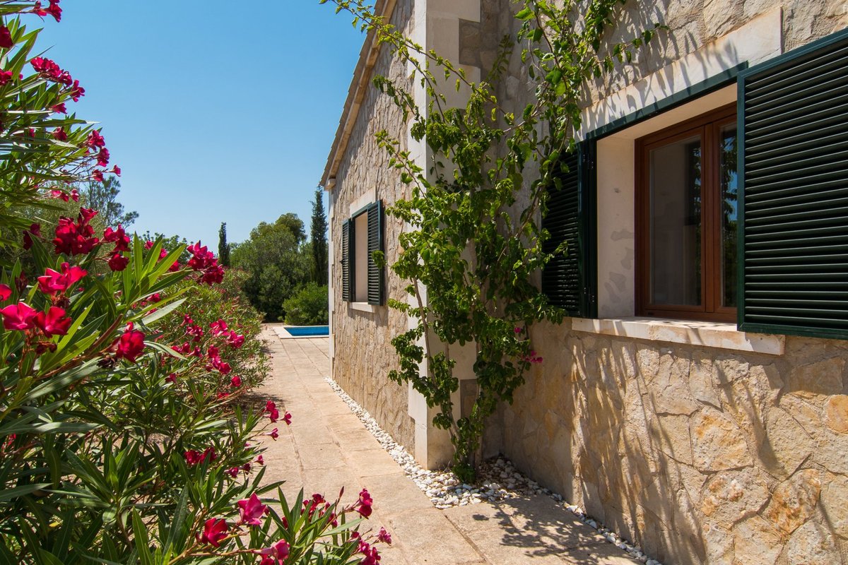 Newly built villa located in a quiet rural setting between Algaida and San Gual, surrounded by Mediterranean vegetation. It has an L-shaped swimming pool, spacious terraces, barbecue area and access to a nearby tennis court. The interior is bright and elegant, with a fully equipped kitchen and comfortable spaces. There are four bedrooms in the main house and a cosy guest house with its own bathroom. Its location allows easy access to Algaida, Palma and the beaches, making it ideal for families seeking privacy and comfort close to all amenities. Please contact First Mallorca for more information.