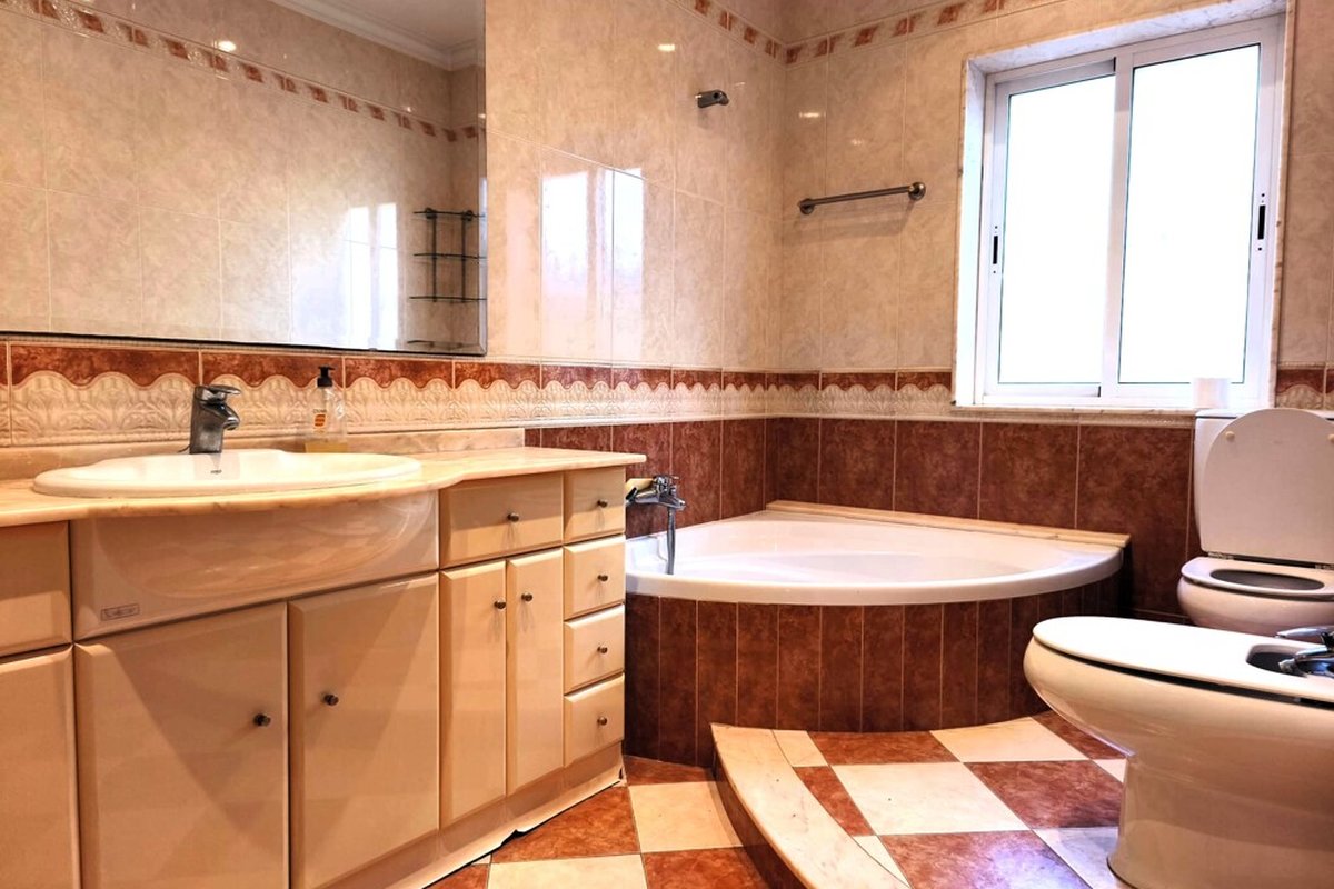The main porch opens into a spacious living room with two ambiences and garden views. The independent kitchen, fully equipped and with a breakfast/office area, also offers exterior views and has direct access to the second porch. The property includes 5 bedrooms (3 with built-in wardrobes) and 2 full bathrooms.