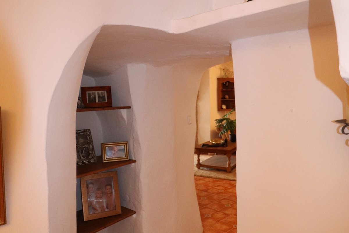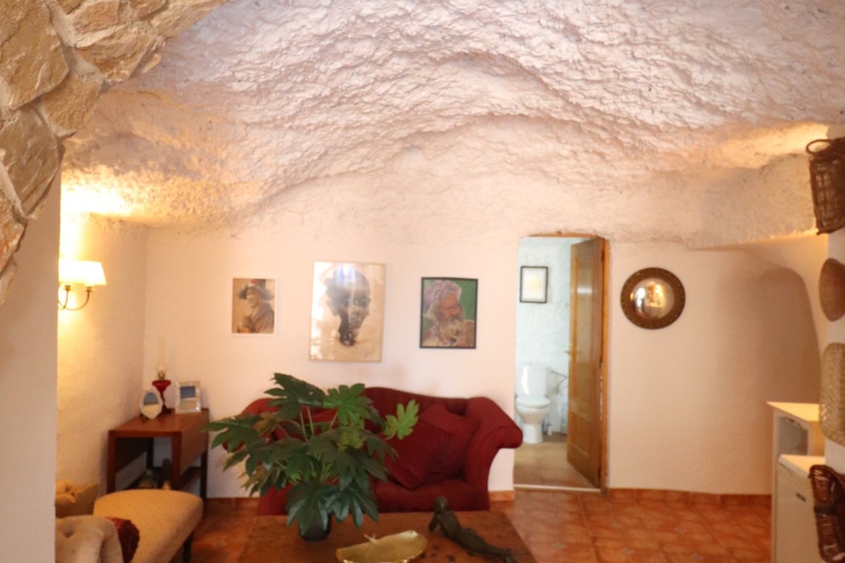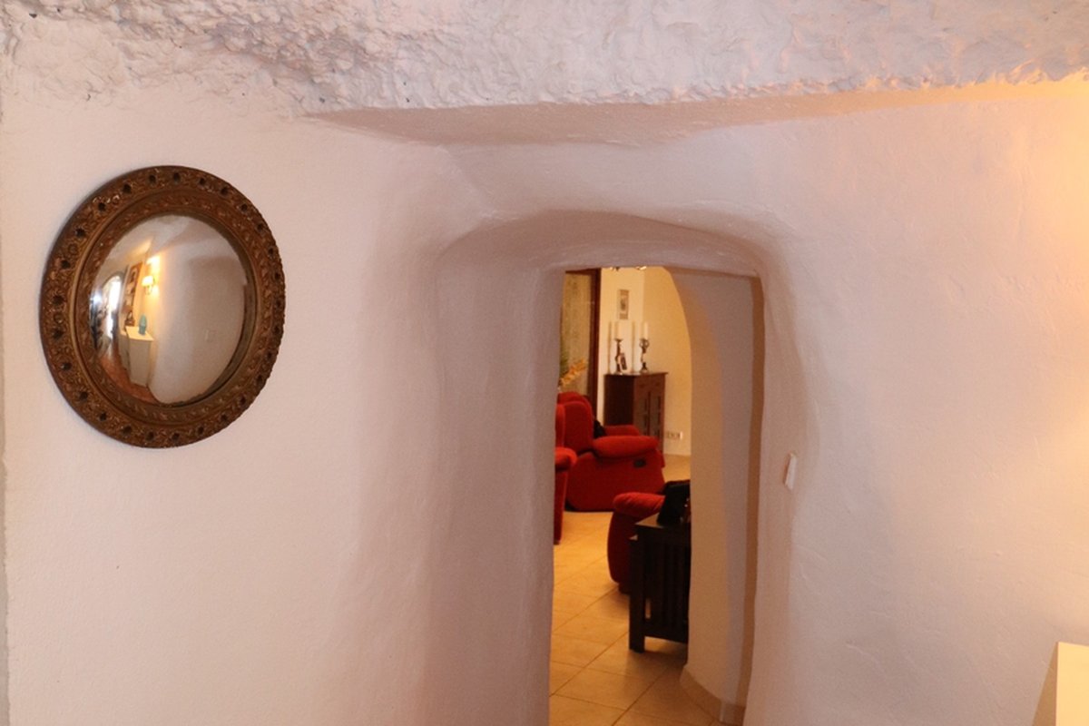 This beautiful property is located in a superb quiet location just a few minutes drive from the 2 villages of Hondon de las nieves and Hondon de los frailes with all amenities. There are more than 400m2 of built area including the main house with a part cave, a pool area with porch, summer kitchen, technical local and toilet, storage, a laundry room and a double garage with workshop that could easily be converted into a separate apartment. The main house consists of several livings, dining room, a kitchen, a pantry and 5 bedrooms and 2 bathrooms. The rooms are in the cave, which brings charm and a lot of freshness in summer. In front of the house, the space is occupied by a covered terrace (30m2) and a spacious terrace with barbecue area. The pool is superb and is located right in front. The house is connected to the water and electricity network, and has internet and a hot/cold air conditioning unit. It is a rare property, with a lot of charm and that must be seen to realize
