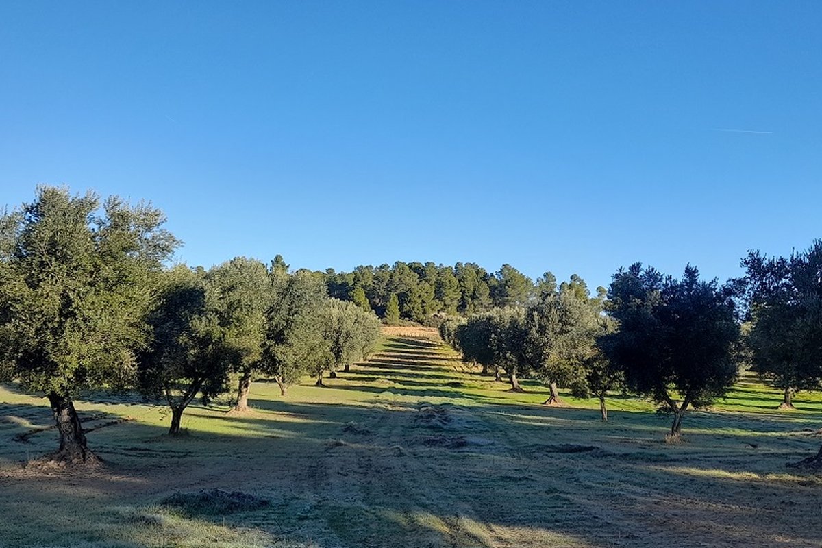 El corazón de la finca es un gran bancal llano de olivos milenarios en plena producción, ejemplares únicos que son auténticas esculturas vivas. Además, la propiedad cuenta con una zona de pinar que aporta frescor y variedad al paisaje.