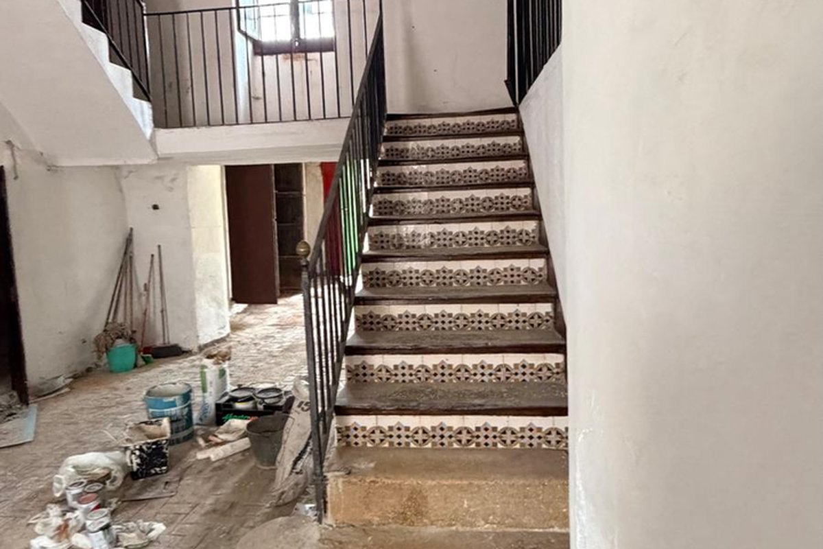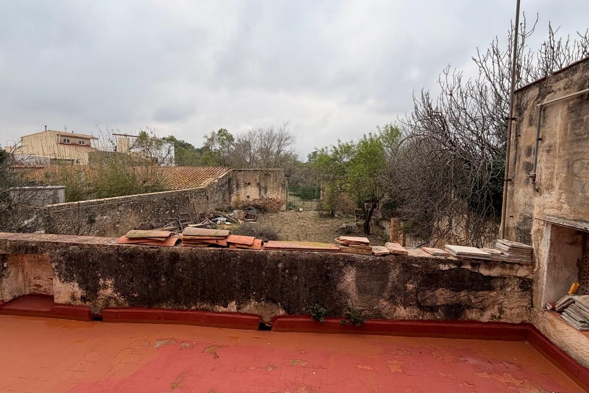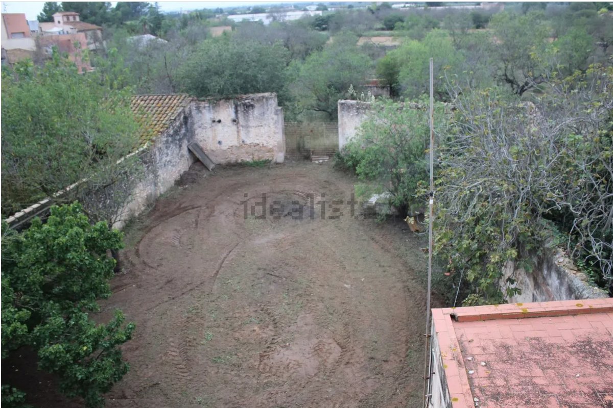 La propiedad ha sido diseñada para ofrecer una transición fluida entre la vida doméstica y la naturaleza. La vivienda principal cuenta con una puerta trasera que conecta directamente con un amplio patio anexo, el corazón social de la finca. Desde este patio, otra entrada nos conduce a una extensa plantación de almendros, creando un eje de paso privado y funcional.