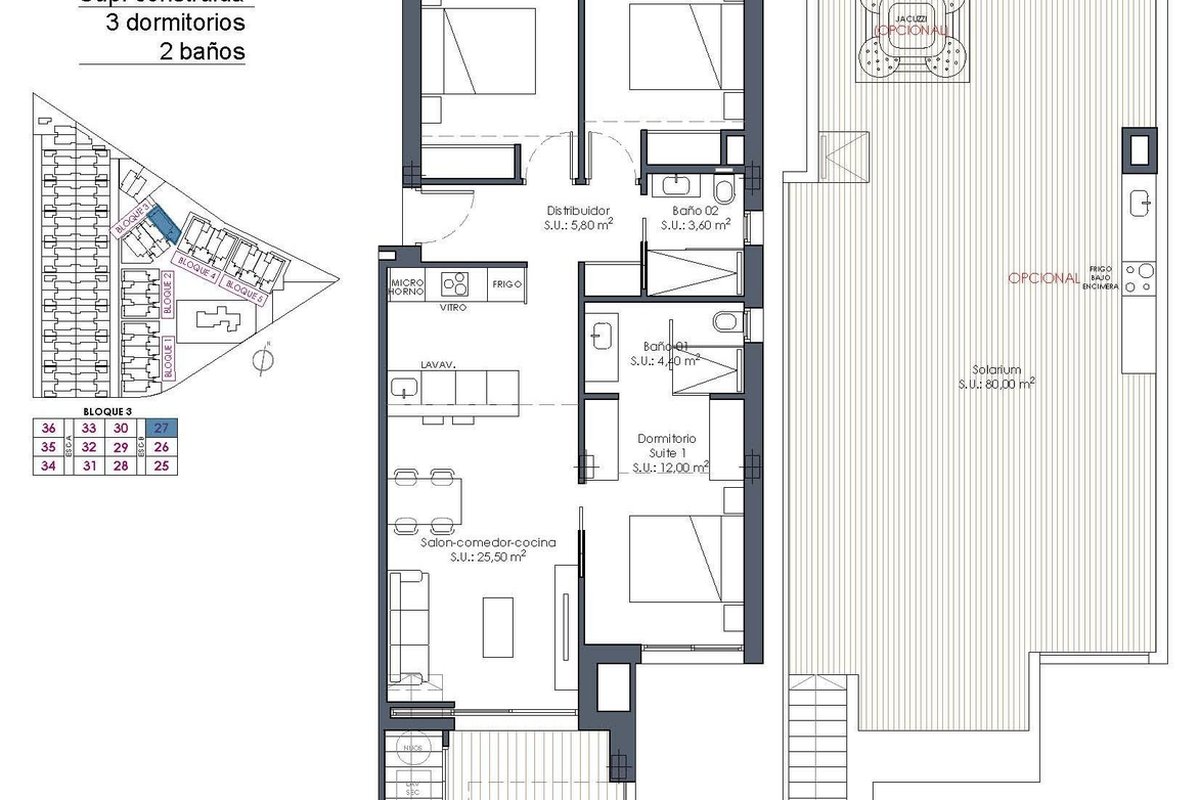 New Build Resort Apartments at La Serena Golf-Los Alcazares Near the Beach Modern Golf Front Living on the Costa Calida Discover this exclusive new build residential resort located at La Serena Golf in Los Alcazares. This contemporary development features 66 stylish apartments with 2 or 3 bedrooms and 2 bathrooms, one of them en suite, designed to offer comfort, elegance and an exceptional Mediterranean lifestyle just 300 meters from the Mar Menor. Los Alcazares is a charming coastal town known for its relaxed atmosphere, sandy beaches and long seaside promenade. With more than 300 days of sunshine per year, the area offers a perfect environment for outdoor living, water sports and golf. The town also provides a wide selection of restaurants, shops, marinas and sports facilities, making it a highly desirable destination for both permanent residence and holiday homes. Apartments with Terraces, Gardens and Private Solariums The residential complex offers several property types to suit different lifestyles. Buyers can choose between ground floor apartments with private gardens, middle floor homes with spacious terraces or penthouses with terraces and large rooftop solariums. The solariums include an outdoor shower and offer the option to add a summer kitchen and private jacuzzi, creating an ideal space for relaxation and entertaining while enjoying open views of the golf course and surrounding landscape. Each home has been designed with bright interiors and open plan living spaces that connect seamlessly with the outdoor areas. Resort Style Amenities and Exceptional Communal Areas One of the most distinctive features of this development is its resort style concept. Residents can enjoy a spectacular lagoon style swimming pool of approximately 190 m2 with beach style access and relaxing areas with Balinese beds. Additional communal facilities include landscaped gardens, a spa area, gym and sauna located in the basement level. The complex also offers a children playground, two petanque courts and communal restrooms near the pool area, creating a welcoming environment for residents and guests. Quality Finishes and Modern Features The apartments are built with modern materials and high quality specifications designed for comfort and style. Fully equipped kitchen with white glass finish appliances Bathrooms with vanity units, shower screens and backlit mirrors Motorized window shutters Basic lighting package Fully installed ducted air conditioning Underground parking space for each property Underground bicycle parking and optional storage rooms Prime Location Close to Beach and Golf Mar Menor beach 0.3 km La Serena Golf next to the development Los Alcazares town center 2 km Cartagena 22 km Murcia 40 km Region de Murcia International Airport 30 km Alicante Elche Airport 90 km The calm and shallow waters of the Mar Menor are ideal for swimming, sailing and paddle surfing throughout the year. Secure Your Home at La Serena Golf Resort These modern apartments combine beachside living, golf views from most units and resort style amenities in one of the most attractive areas of the Costa Calida. Contact us today to receive more information or arrange a visit and secure your new home in La Serena Golf-Los Alcazares.