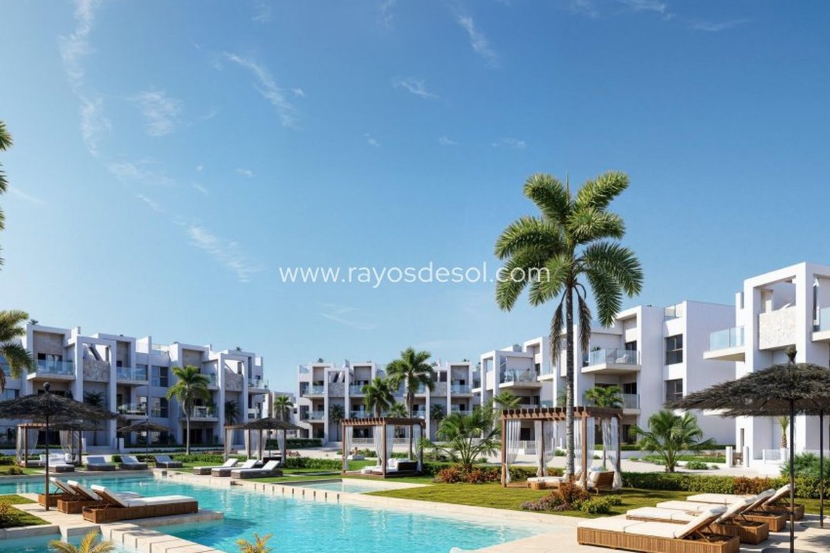 Discover this exclusive new build residential resort located at La Serena Golf in Los Alcazares. This contemporary development features 66 stylish apartments with 2 or 3 bedrooms and 2 bathrooms, one of them en suite, designed to offer comfort, elegance and an exceptional Mediterranean lifestyle just 300 meters from the Mar Menor.