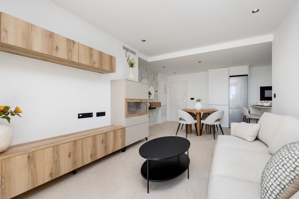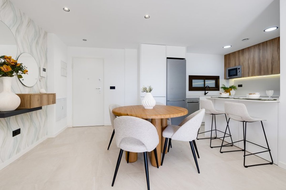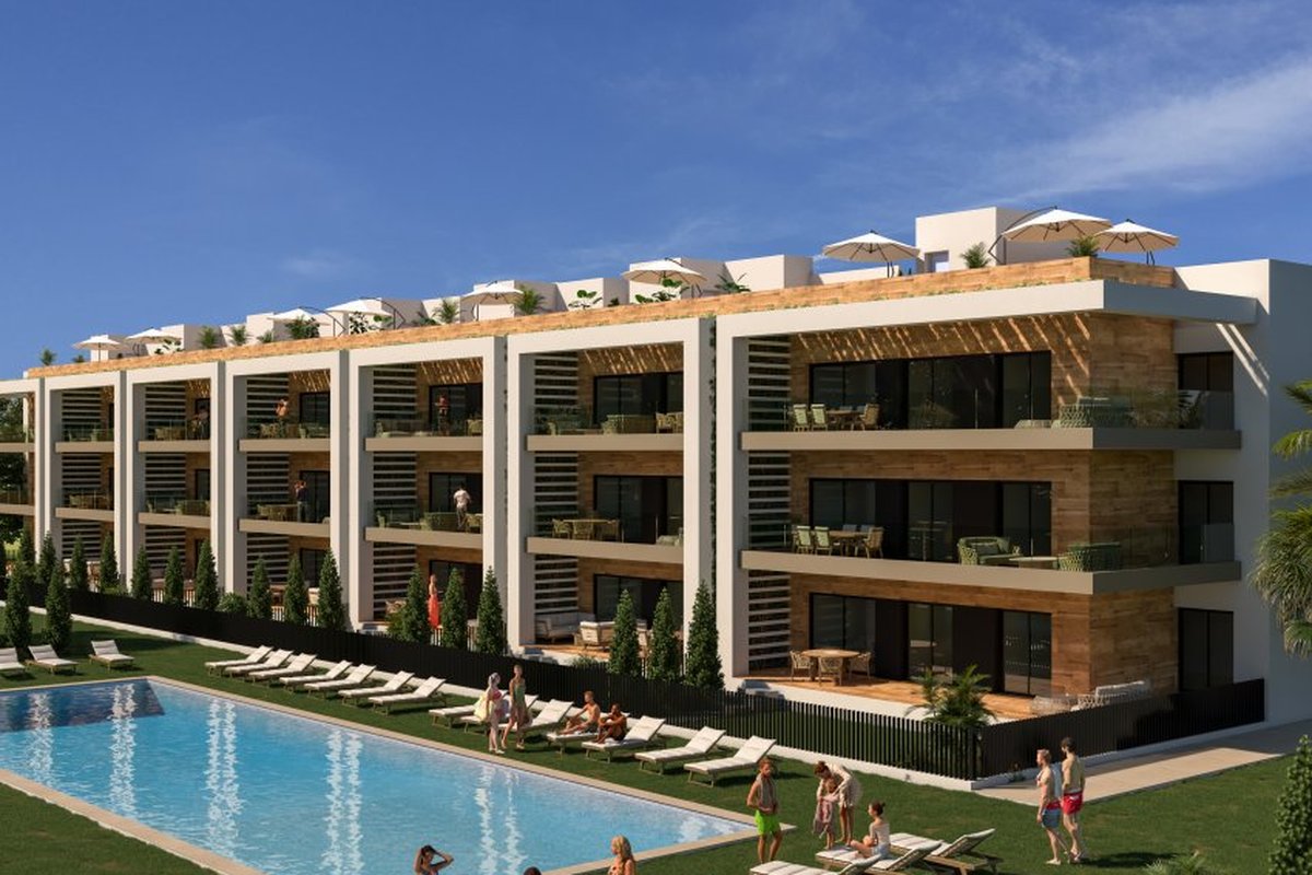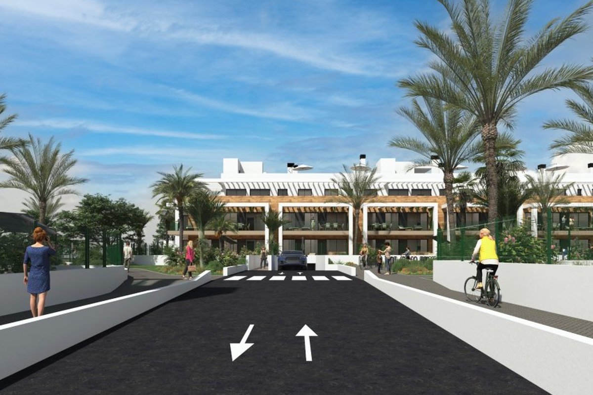 Located in the charming town of Los Alcázares, this residential complex offers a variety of housing options that cater to different needs and lifestyles. With a total of 87 units, future residents can choose between Apartments, ground-floor, and Penthouses, each designed to maximize comfort and functionality. The proximity to the sea, just 1 km away, allows for enjoying the sea breeze and spectacular views. Additionally, the proximity to a golf course, just 100 meters away, makes this residential complex an ideal choice for golf enthusiasts. The nearest airport is 44 km away, facilitating access for frequent travelers.OUTDOOR AREASThe exteriors of these homes are designed to offer an unparalleled outdoor lifestyle. Each property features a terrace, ideal for enjoying the views and the Mediterranean climate. Additionally, some types include a private solarium, perfect for relaxing under the sun. Ground-floor homes have private gardens, providing a personal green space to enjoy with family or friends. For those seeking an extra touch of luxury, some properties feature a private pool, offering a personal oasis to cool off during the warm summer days.INDOOR AREASThe interior of the homes is carefully designed to offer comfort and modernity. Porcelain tile floors add an elegant touch and are easy to maintain. The homes are equipped with modern appliances, ensuring the kitchen is both functional and stylish. Electric shutters and the video intercom add an extra level of convenience and security. Built-in wardrobes in the bedrooms provide ample storage space, keeping the spaces tidy and uncluttered. Distribution options include homes with 2 and 3 bedrooms, all with 2 bathrooms, ensuring sufficient space for families of different sizes.COMMON AREASThe common areas of the residential complex are designed to foster a sense of community and offer a variety of activities for all ages. Residents can enjoy spacious landscaped areas, perfect for walking or relaxing outdoors. The communal pool is ideal for socializing and cooling off during the hot summer months. For the little ones, the playground offers a safe and fun space to play. Additionally, the residential complex features a communal garage and parking, ensuring there is always space available for residents' and visitors' vehicles.LOS ALCÁZARESLos Alcázares, on the Costa Cálida, is known for its long beaches with calm waters and its relaxed atmosphere. This tourist destination offers a wide variety of water and sporting activities, making it an ideal place for lovers of the sea and water sports. Tourism in Los Alcázares focuses on its beaches, such as Playa de Los Narejos, perfect for families and water sports such as windsurfing and kitesurfing. In addition, its promenade is a meeting point to enjoy the local gastronomy and the coastal atmosphere. The lifestyle in Los Alcazares is tranquil and sea-oriented. Residents and visitors enjoy a relaxed lifestyle, with a wide gastronomic offer highlighting seafood and Mediterranean cuisine. The community values the proximity to the sea and the outdoor life, making Los Alcázares an attractive destination for those seeking a tranquil coastal life.