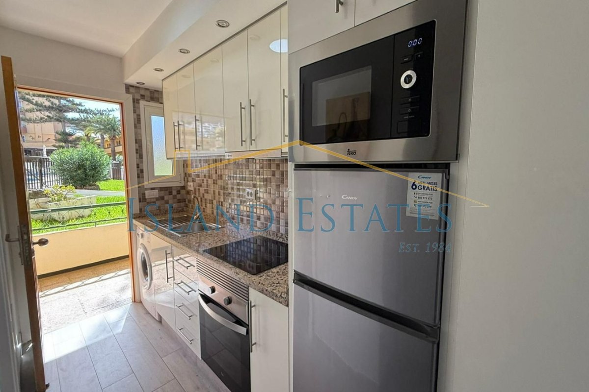 Well presented 1 bedroom ground floor apartment in the popular community of Torres Del Sol. Completely renovated with new electrics, plumbing and a modern laminate floor throughout. When entering there is a full working kitchen, a modern shower room, a living area and then a separate bedroom. There is no outside terrace, however the community has 2 swimming pools. Air conditioning and new double glazing has been installed for your comfort.