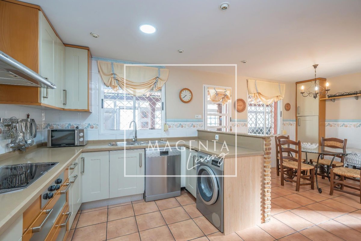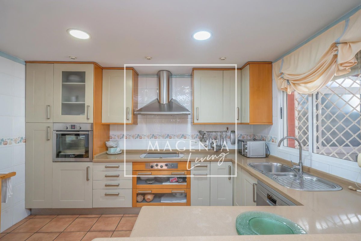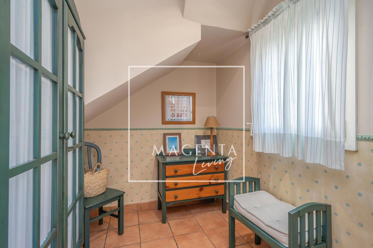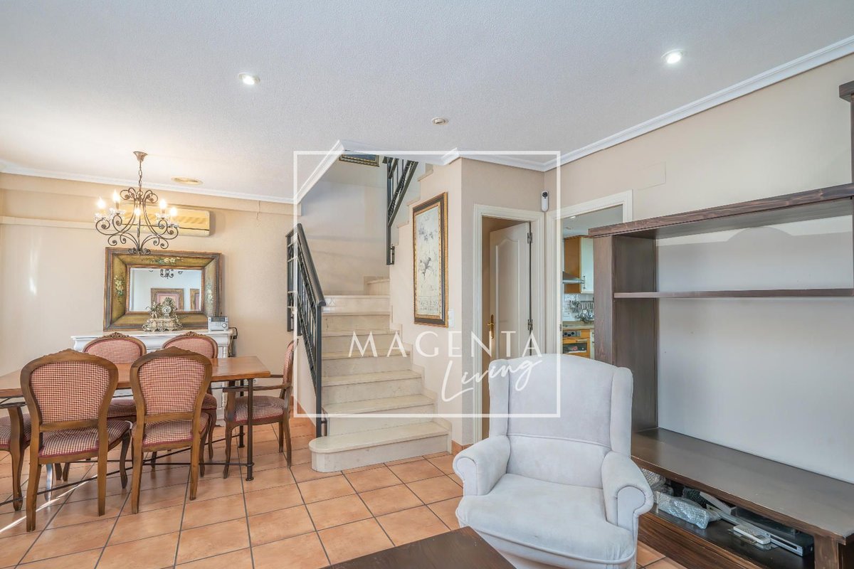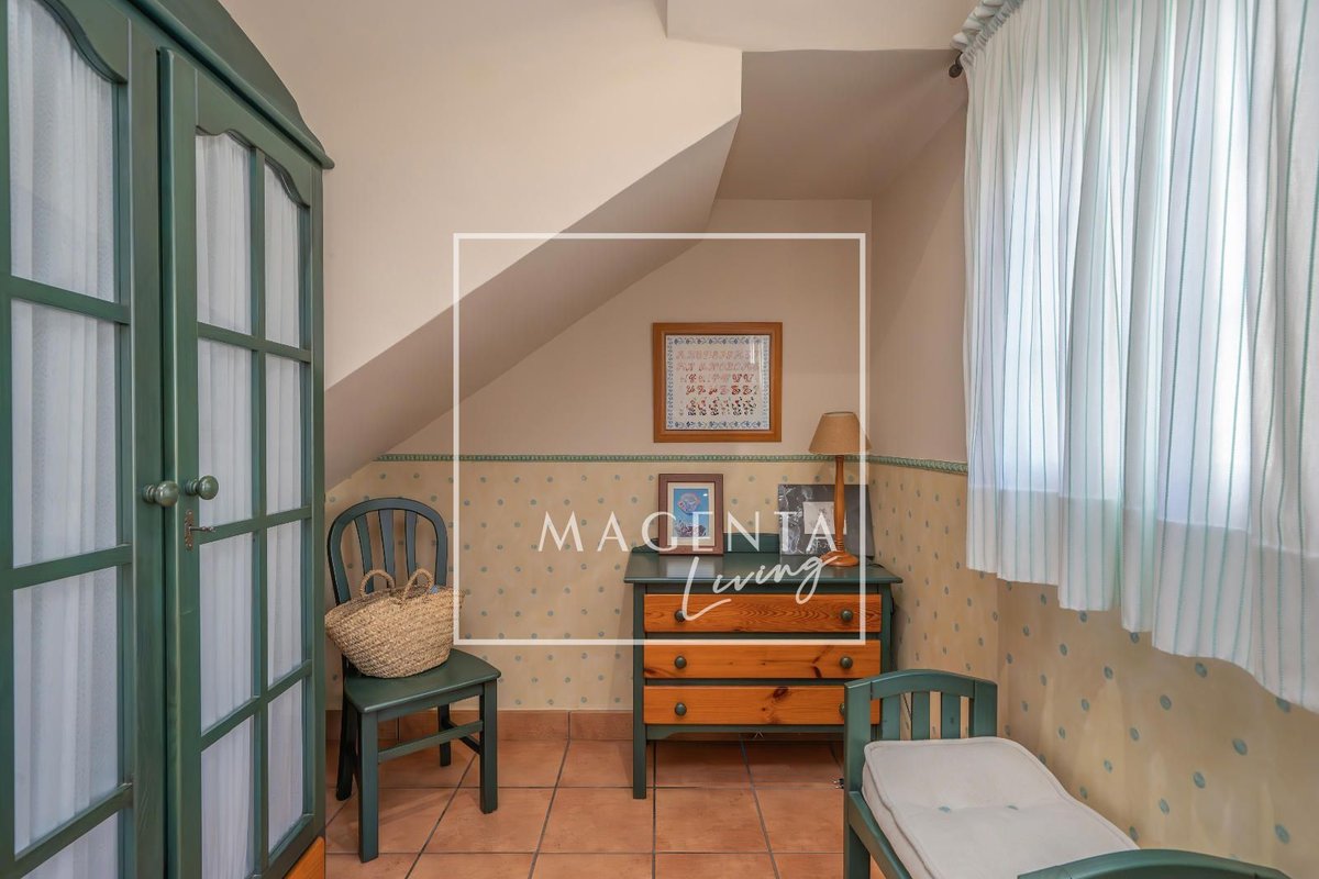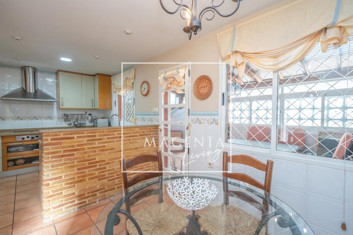 The property is laid out in a functional and welcoming way. On the main floor, there is an elegant living-dining room, perfect for everyday living. Next to the staircase leading to the upper floor, you will find a spacious, fully equipped kitchen with timeless finishes, open to a pleasant breakfast area, as well as a guest toilet. From the kitchen, there is access to a large covered terrace of 33 m², which connects to an additional open terrace of 25 m²—ideal for family gatherings, outdoor dining, or relaxing moments.