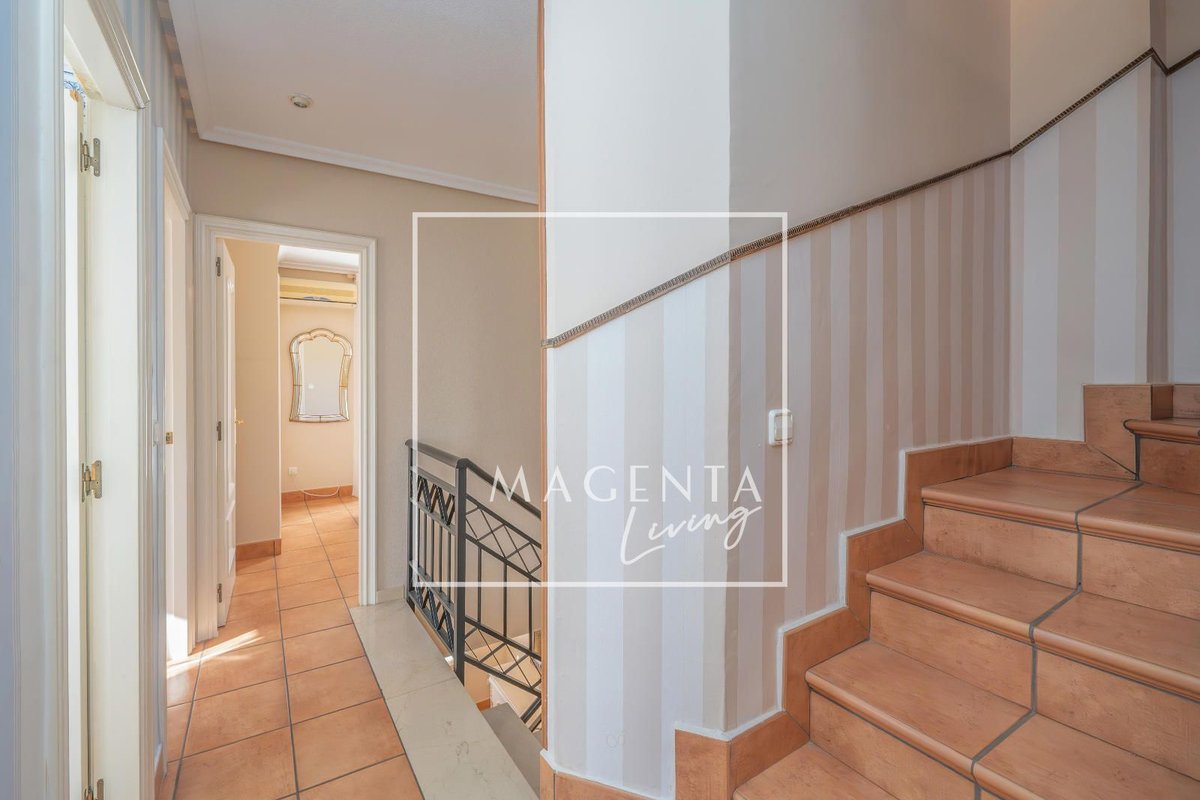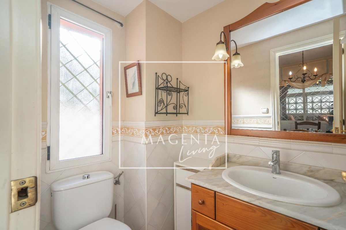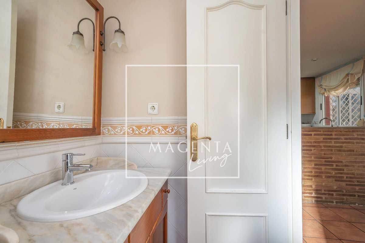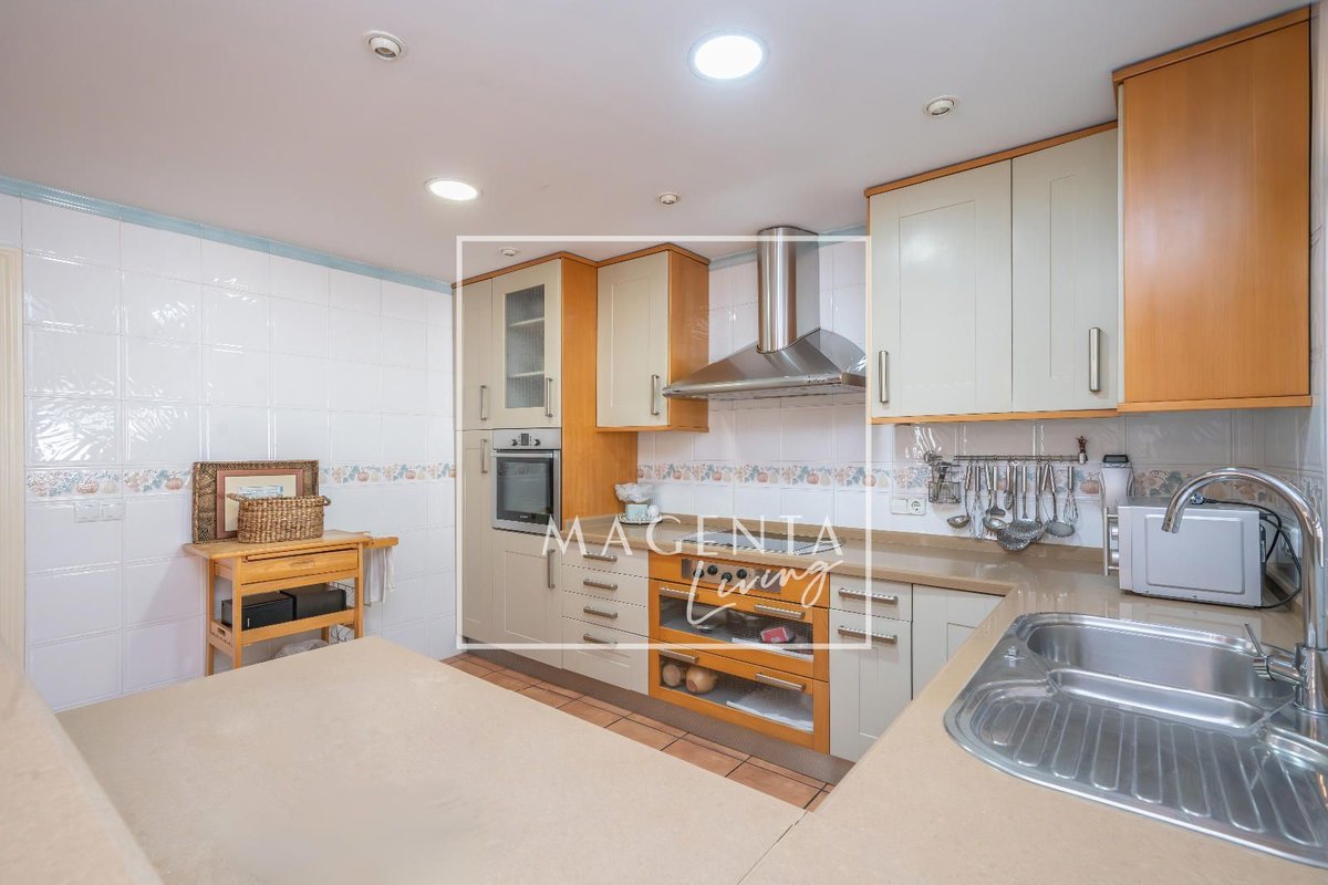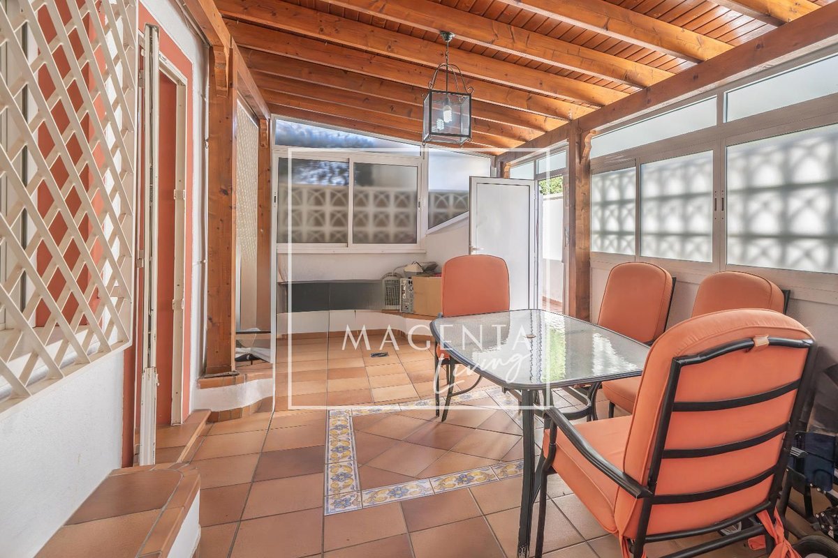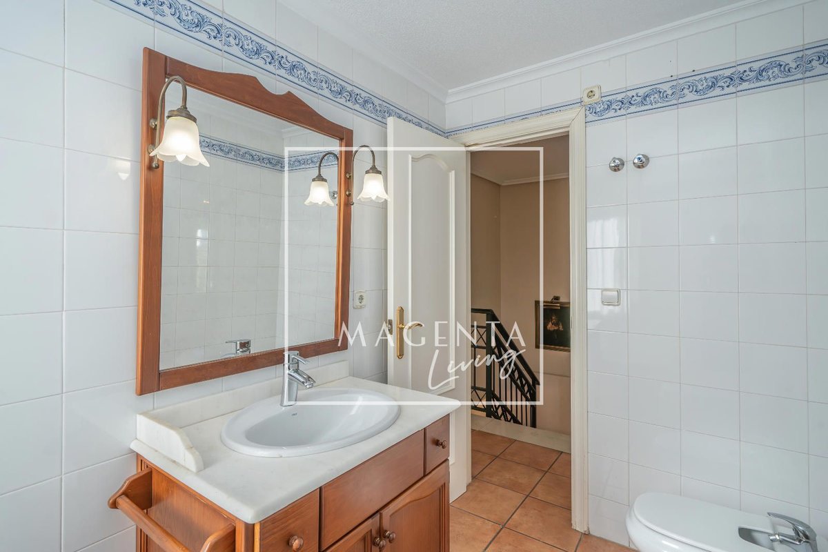 The property is laid out in a functional and welcoming way. On the main floor, there is an elegant living-dining room, perfect for everyday living. Next to the staircase leading to the upper floor, you will find a spacious, fully equipped kitchen with timeless finishes, open to a pleasant breakfast area, as well as a guest toilet. From the kitchen, there is access to a large covered terrace of 33 m², which connects to an additional open terrace of 25 m²—ideal for family gatherings, outdoor dining, or relaxing moments.