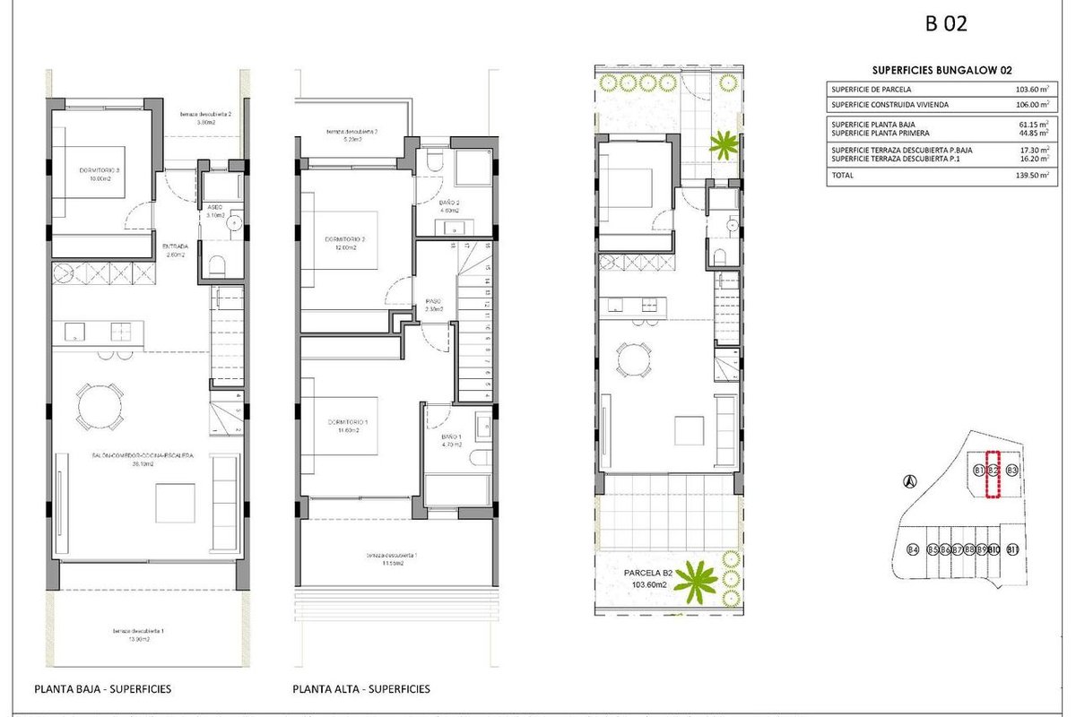 All properties will have 3 spacious bedrooms and 3 elegant bathrooms to provide comfort and privacy to its inhabitants. The spacious living-dining room, with its integrated modern kitchen, will be the heart of the house, where family and friends will be able to gather and enjoy unforgettable moments. In addition, the house will be equipped with pre-installation for ducted air conditioning. Cutting-edge technology will be a prominent feature of this house, as it will be fully automated thanks to an advanced home automation system. From lighting control to security management, everything will be at your fingertips.