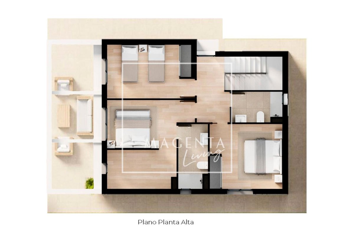 This detached villa, with 157 built square meters and a spacious private garden, offers a true haven of serenity and comfort in the peaceful and well-connected area of Balcón de Finestrat.On the ground floor, you’ll find a spacious living-dining room, an open-plan kitchen that connects seamlessly with the garden, a double bedroom, and a guest toilet. The first floor offers three double bedrooms and two bathrooms, one of which features a walk-in closet and an en-suite bathroom. Every room stands out for its high-quality finishes, providing a sophisticated and light-filled atmosphere.The residential complex also includes communal swimming pools and extensive landscaped areas — ideal for relaxing and fully enjoying the Mediterranean lifestyle in a modern, intimate, and family-friendly environment.The estimated completion date is February 2026.Contact us to discover this exclusive new-build gem.