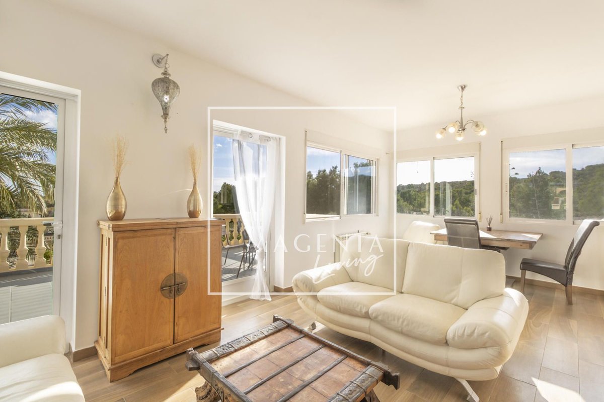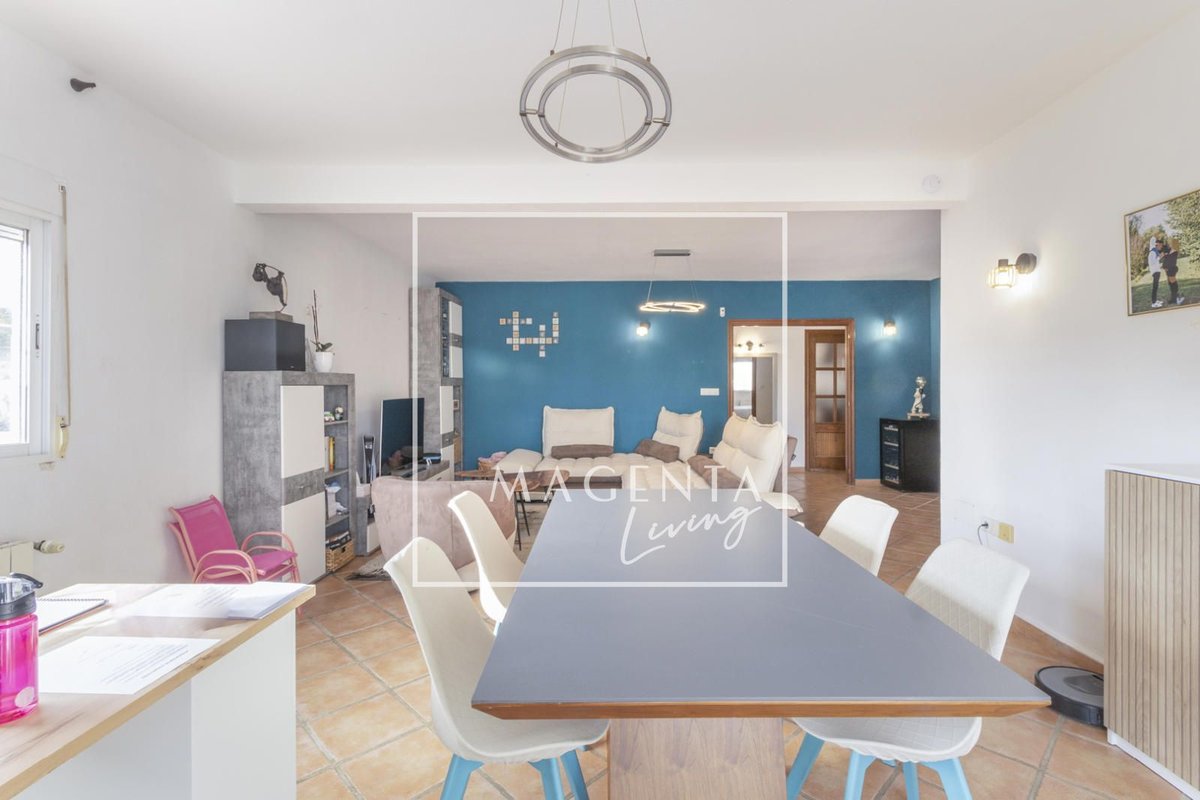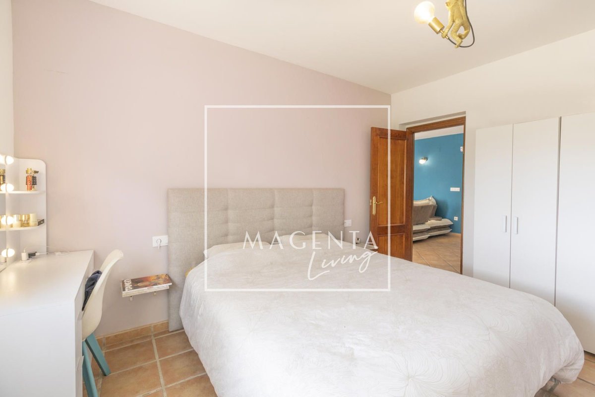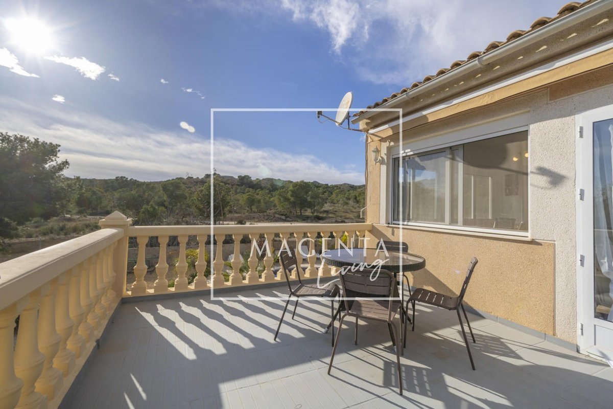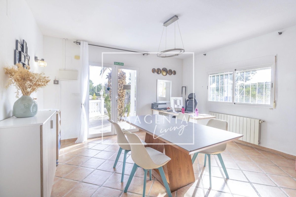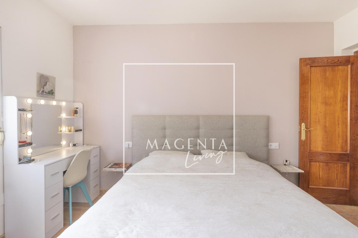 Can you imagine living surrounded by nature, with open views of the mountains and the sea, in a peaceful setting just minutes from the city? Discover this charming detached villa in Valle del Sol, where comfort and scenery come together to offer you a privileged lifestyle.The villa sits on a generous 1,926 m² plot, where the garden and spacious grounds provide multiple outdoor areas to enjoy.On the ground floor, approximately 170 m², we find a large and very bright living-dining room overlooking the garden, ideal for enjoying family moments. To one side, there is a master bedroom with an en-suite bathroom, also with views of the garden and entrance. Three additional bedrooms and a full bathroom complete the sleeping area. The independent kitchen, fully equipped and practically laid out, has direct access to a porch with a gallery.The second floor houses an attractive independent 60 m² space that functions as a home in itself, perfect for guests or as additional private space. This level features a double bedroom, a full bathroom with a bathtub, and a cheerful open-plan kitchen connected to the living-dining area, all very bright and with spectacular views of the surrounding countryside. From the living room, there is access to a magnificent terrace — a privileged spot from which to admire views of the large garden, pool area, mountains, and the sea on the horizon.The exterior is undoubtedly one of the main highlights of this property. The extensive garden surrounding the home offers various charming corners, perfect for relaxing and enjoying the Mediterranean climate all year round. There is a barbecue area, a lovely outdoor dining space with a pergola surrounded by fruit trees and flowers, a chill-out area, a children’s zone, and multiple landscaped areas with plants.For maintenance, the plot features an underground automatic irrigation system, making it easy to care for the green areas. In addition, there is a water tank in the garden with a hatch and pump, providing an additional backup water resource if needed.The property is connected to both the electricity and water mains, ensuring comfort and continuous supply in everyday life.Two enclosed garage spaces, providing security and convenience, complete the exterior area of the house.Valle del Sol combines the serenity of living close to nature with ample outdoor space, along with the convenience of having the city nearby. Located just 10 minutes from Mutxamel and about 25 minutes from Alicante city center, this area offers quick access to services, shops, golf courses, leisure activities, and beaches. Its excellent motorway connection to Elche–Alicante International Airport makes both national and international travel easy, making it a strategic location for those who value comfort and the Mediterranean lifestyle.A villa designed to be enjoyed without rush, where every space invites you to experience the Mediterranean with calm, openness, and privacy.IBI : 785,28€At Magenta Living, we will be delighted to show you this home. Contact us!