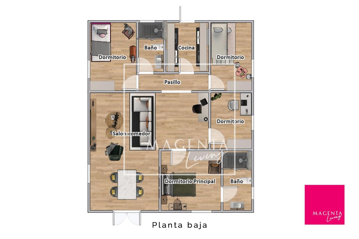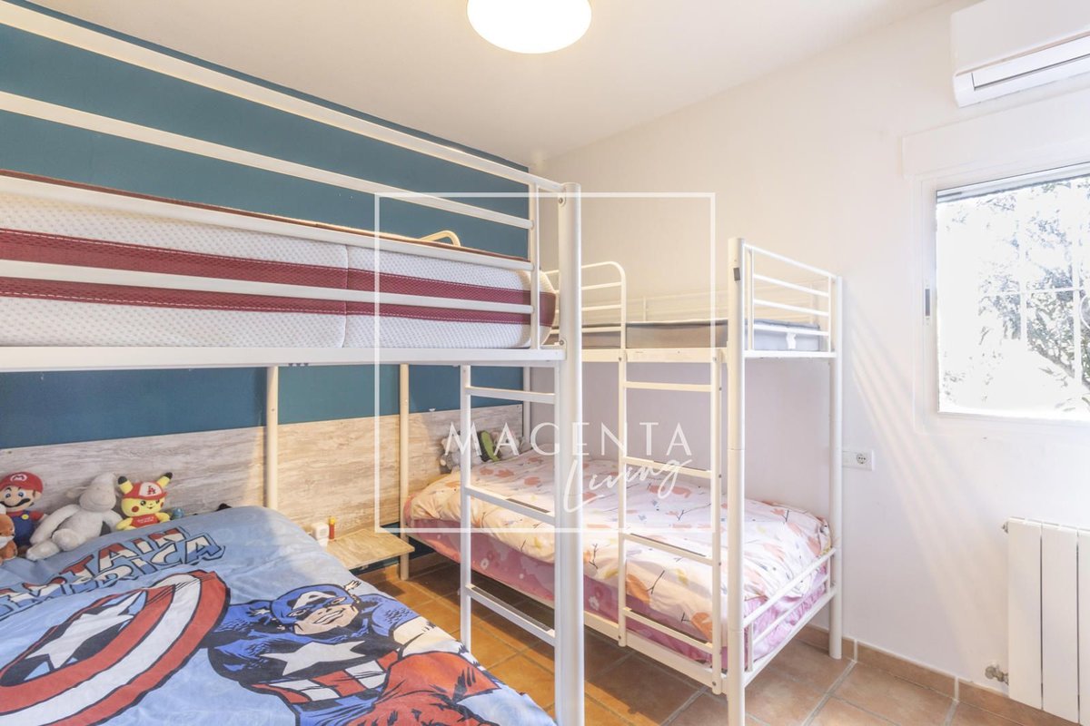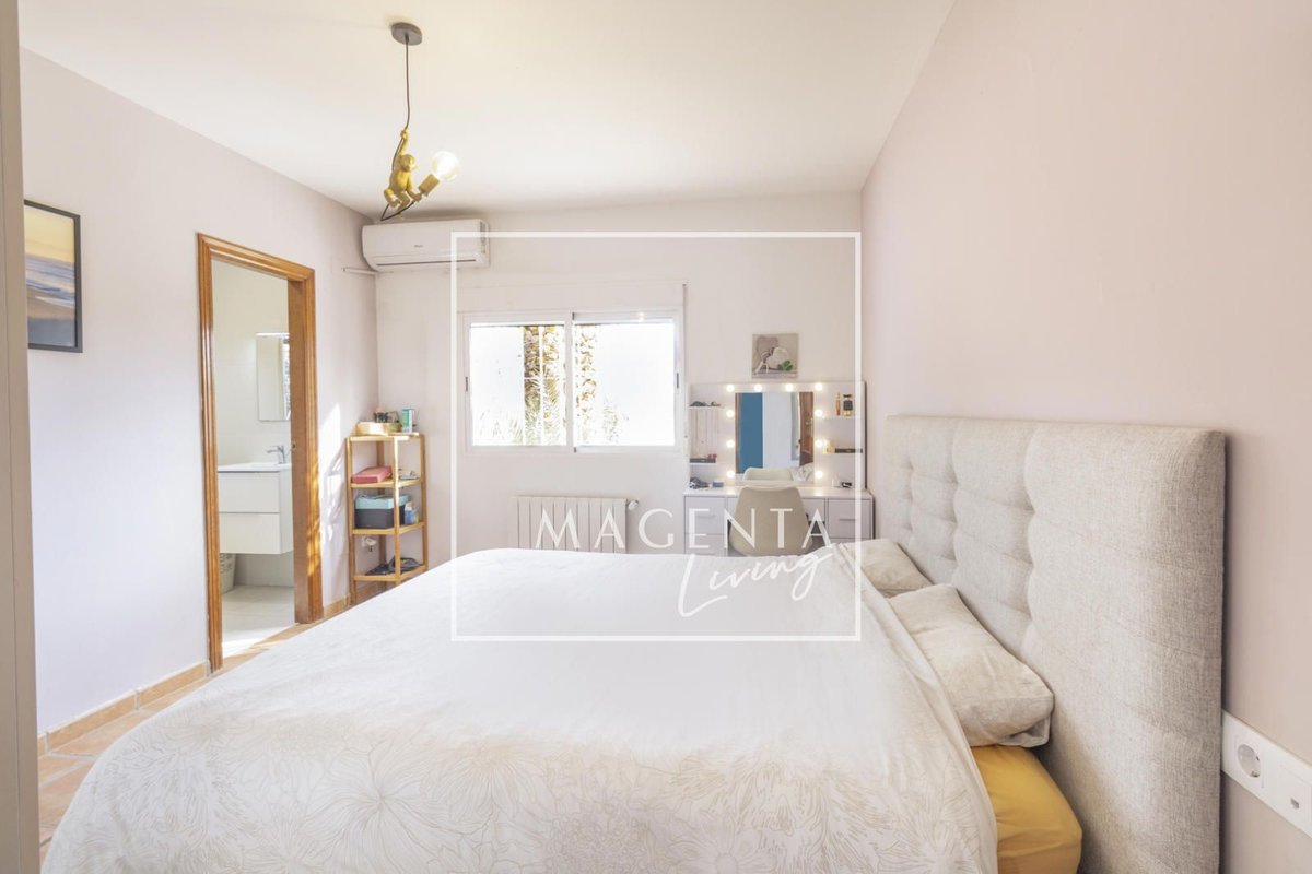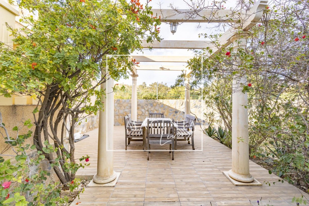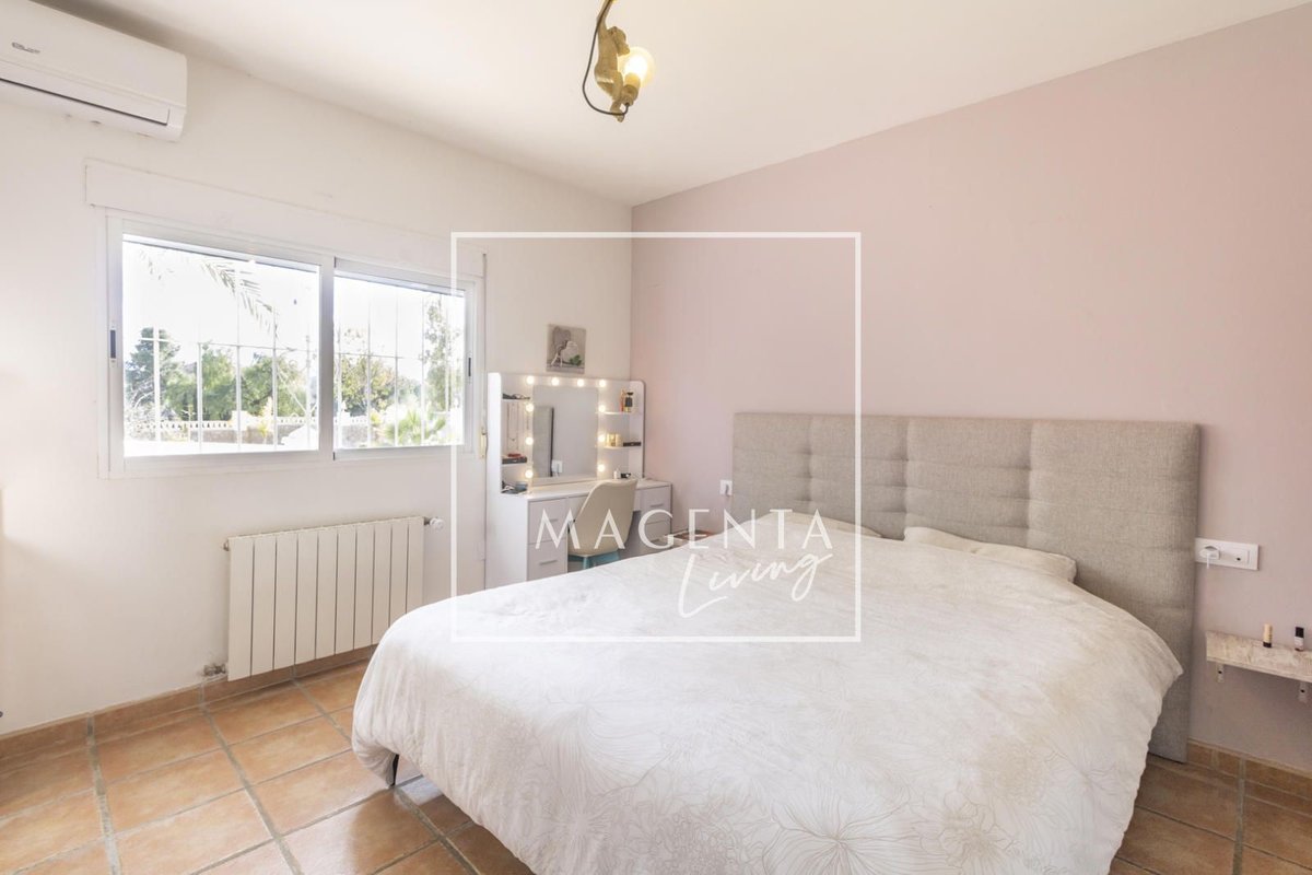 Can you imagine living surrounded by nature, with open views of the mountains and the sea, in a peaceful setting just minutes from the city? Discover this charming detached villa in Valle del Sol, where comfort and scenery come together to offer you a privileged lifestyle.The villa sits on a generous 1,926 m² plot, where the garden and spacious grounds provide multiple outdoor areas to enjoy.On the ground floor, approximately 170 m², we find a large and very bright living-dining room overlooking the garden, ideal for enjoying family moments. To one side, there is a master bedroom with an en-suite bathroom, also with views of the garden and entrance. Three additional bedrooms and a full bathroom complete the sleeping area. The independent kitchen, fully equipped and practically laid out, has direct access to a porch with a gallery.The second floor houses an attractive independent 60 m² space that functions as a home in itself, perfect for guests or as additional private space. This level features a double bedroom, a full bathroom with a bathtub, and a cheerful open-plan kitchen connected to the living-dining area, all very bright and with spectacular views of the surrounding countryside. From the living room, there is access to a magnificent terrace — a privileged spot from which to admire views of the large garden, pool area, mountains, and the sea on the horizon.The exterior is undoubtedly one of the main highlights of this property. The extensive garden surrounding the home offers various charming corners, perfect for relaxing and enjoying the Mediterranean climate all year round. There is a barbecue area, a lovely outdoor dining space with a pergola surrounded by fruit trees and flowers, a chill-out area, a children’s zone, and multiple landscaped areas with plants.For maintenance, the plot features an underground automatic irrigation system, making it easy to care for the green areas. In addition, there is a water tank in the garden with a hatch and pump, providing an additional backup water resource if needed.The property is connected to both the electricity and water mains, ensuring comfort and continuous supply in everyday life.Two enclosed garage spaces, providing security and convenience, complete the exterior area of the house.Valle del Sol combines the serenity of living close to nature with ample outdoor space, along with the convenience of having the city nearby. Located just 10 minutes from Mutxamel and about 25 minutes from Alicante city center, this area offers quick access to services, shops, golf courses, leisure activities, and beaches. Its excellent motorway connection to Elche–Alicante International Airport makes both national and international travel easy, making it a strategic location for those who value comfort and the Mediterranean lifestyle.A villa designed to be enjoyed without rush, where every space invites you to experience the Mediterranean with calm, openness, and privacy.IBI : 785,28€At Magenta Living, we will be delighted to show you this home. Contact us!