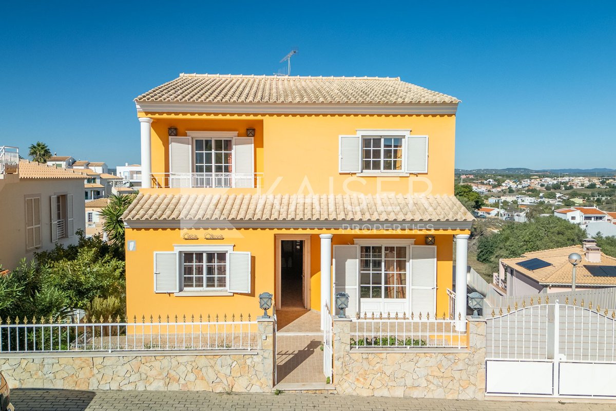 Set on the hillside overlooking the charming village of Algoz, this spacious detached home enjoys a privileged position at the end of a quiet cul-de-sac. From its elevated position, it enjoys open vistas across the surrounding countryside and distant mountains. All essential amenities—including restaurants, shops, pharmacy, supermarket and a local market—are just a short walk away. It comprises: