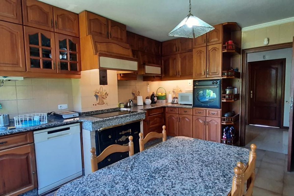 - Cocina con granito en la encimera y en la mesa de centro, todos los electrodomésticos en perfecto estado, incluso algunos nuevos como la adaptación de cocina bilbaína + vitrocerámica incorporada que hace juego con el horno para preservar la simetría de la estancia.