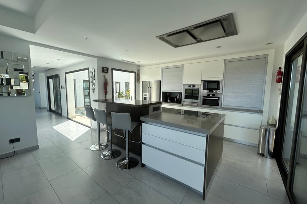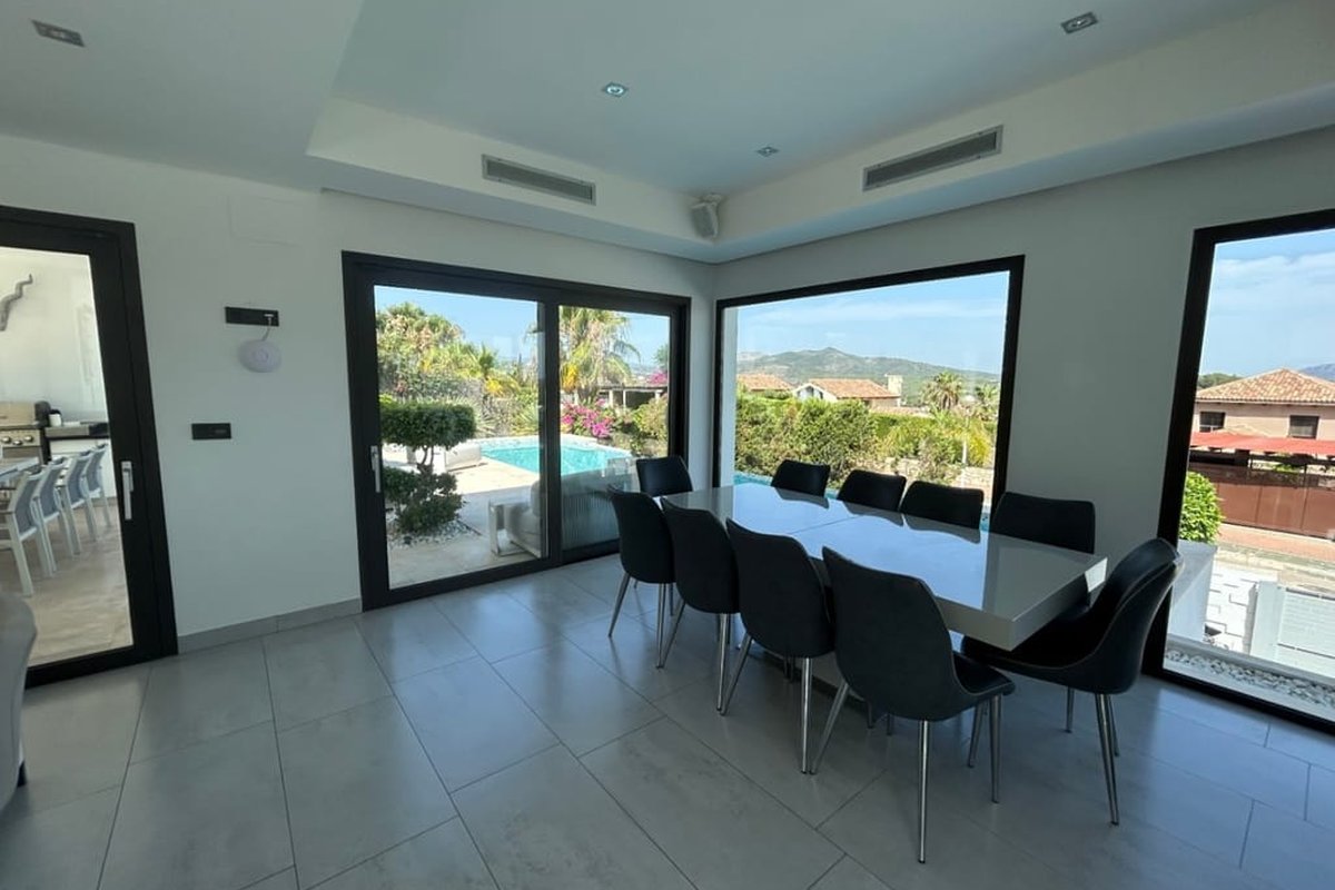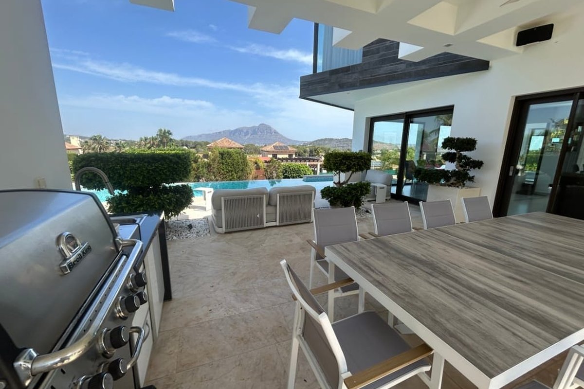 Villa High is a true statement of contemporary design and thoughtful luxury. The five sumptuous bedroom suites have been carefully crafted to offer comfort and privacy, each one with its own en-suite and serene atmosphere. The main living area is a bright, open-plan expanse with floor-to-ceiling windows that frame stunning views of the Mediterranean and Montgó mountain. High ceilings and clean architectural lines create a modern yet welcoming ambiance, while the transition between the indoor and outdoor areas feels effortless.