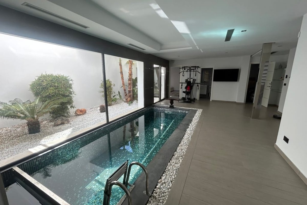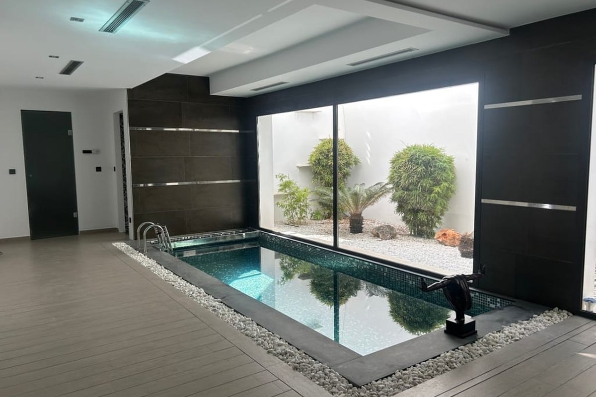 Wellness is at the heart of this home. The private spa level includes a heated indoor swimming pool and a traditional Hammam, offering a tranquil space for relaxation, reflection, or rejuvenation at any time of year. Outside, the lifestyle continues with a showstopping infinity pool that visually blends with the horizon. Expansive terraces wrap around the villa, creating multiple zones to lounge, sunbathe, dine, or entertain. A fully equipped summer kitchen, a luxurious Jacuzzi, and an elegant gazebo complete this outdoor paradise—designed for both grand gatherings and peaceful mornings with a coffee.