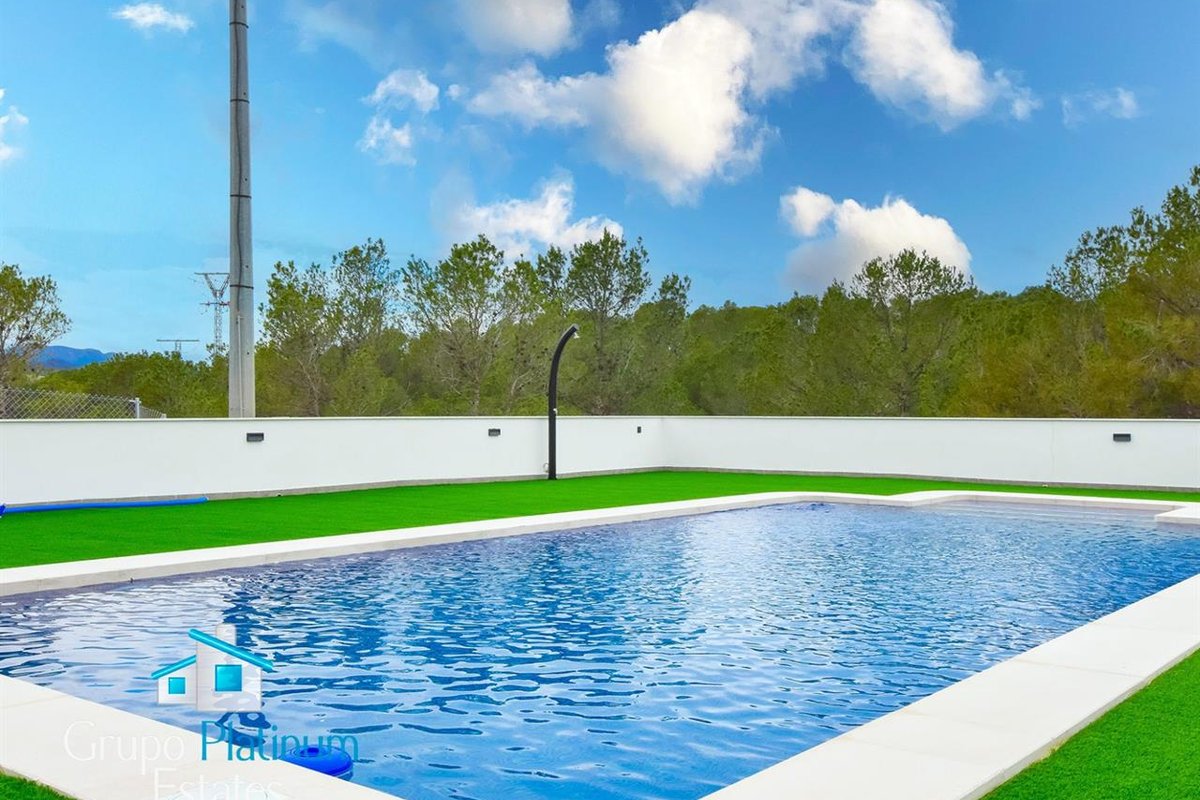 The exterior stands out for its spectacular 5x10 metre swimming pool, accessible directly from the dining room and kitchen, surrounded by 140 m² of artificial grass and a onemetrehigh perimeter wall for added privacy.