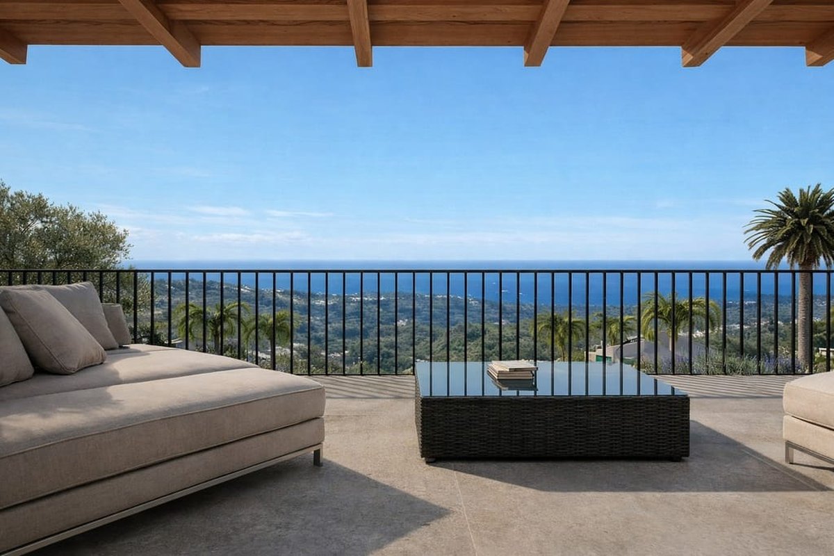The villa is set on a large 5,400 m² plot in an elevated position, offering a high level of privacy and uninterrupted views.