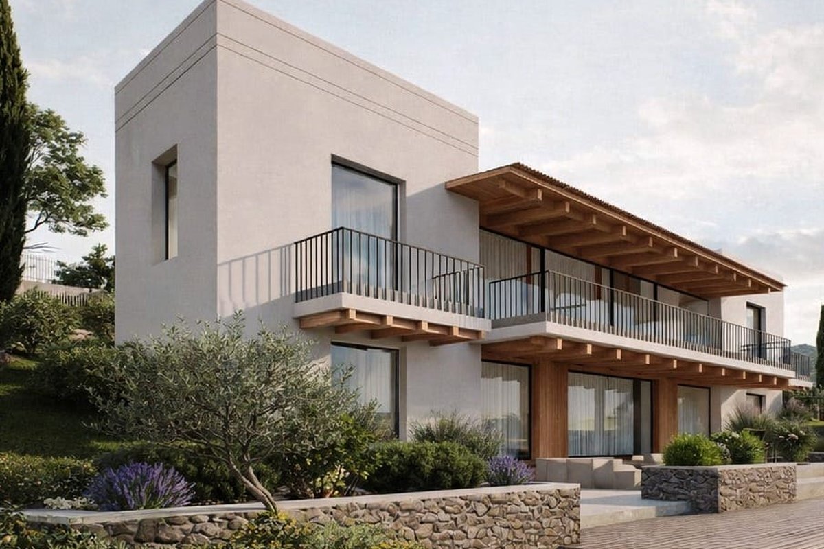 Five-bedroom, five-bathroom detached villa with an approved build of approximately 450 m², set within a generous 5,400 m² plot, featuring a private swimming pool and panoramic sea views, price at 1,100,000 euros.