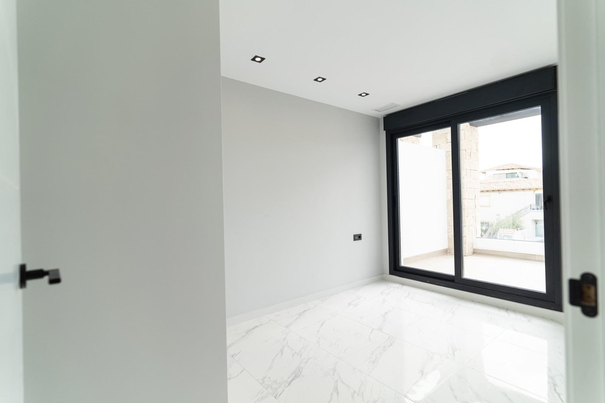 NEW BUILD RESIDENTIAL COMPLEX IN PUNTA PRIMA New Built residential complex of bungalow apartments and 7 detached villas in Punta Prima. New Build villas are distributed over two floors, plus the sunny roof terrace. On the ground floor there is a bright and spacious living room with its open plan kitchen, 1 bedroom with fitted wardrobe and 1 bathroom. On the first floor you can find other 3 bedrooms with fitted wardrobes and 2 bathrooms, from wich one en-suite with the main bedroom. From the main bedroom you can access a terrace. Stairs up you reach private solarium. The urbanization will offer nice green areas with a playground for children, a gym and two communal pools. Complex located a few meters from the centre of Punta Prima where you will find all the amenities you may need. In the surroundings you will find a wide range of nice restaurants, cafes, supermarkets, pharmacies and all the amenities you may need. Punta Prima, located just 5 km from Torrevieja, is characterized by good communication and health infrastructures, the proximity to Alicante airport, and the number of services open throughout the year. Just 10 km away we can find the golf courses of Villamartín, Campoamor, Las Ramblas, Las Colinas and Lo Romero, as well as the commercial centres of La Zenia and Habaneras.~