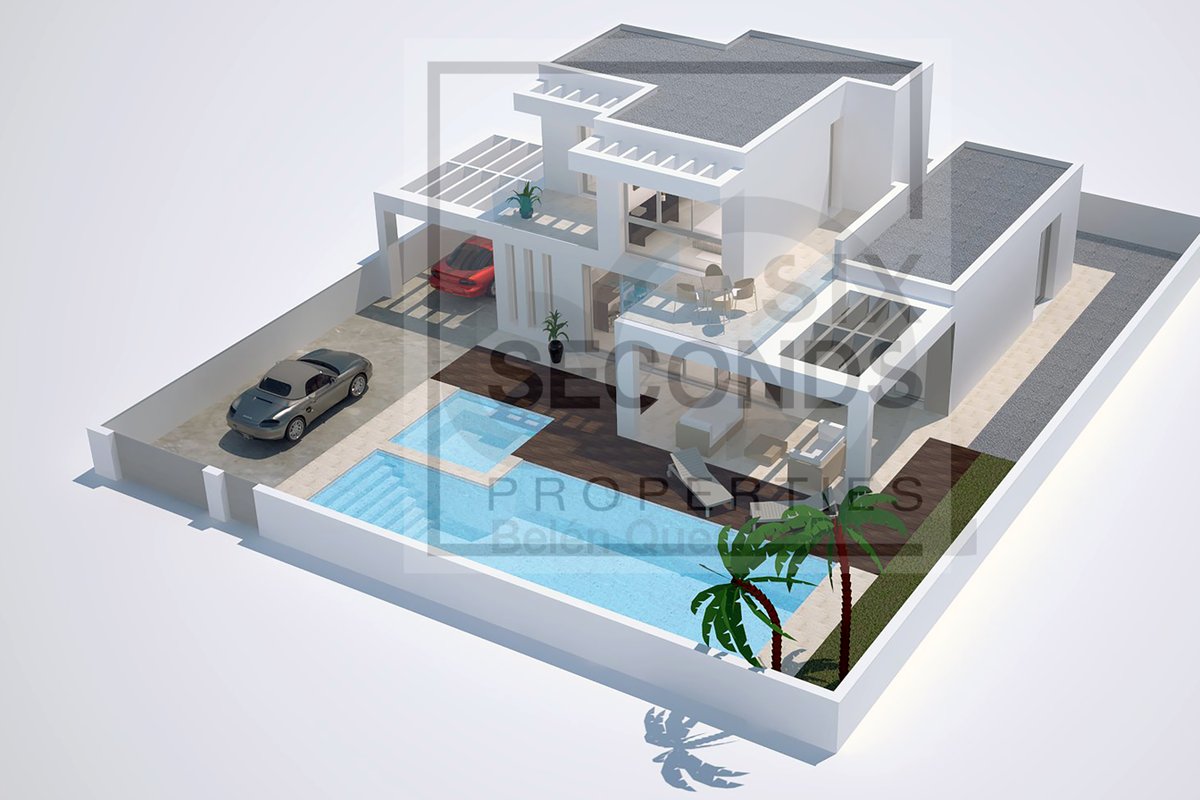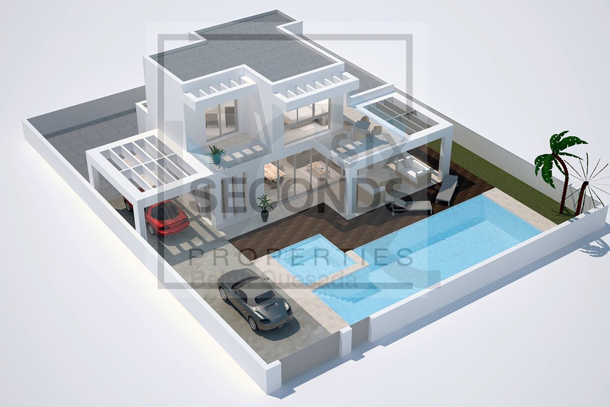 Six Seconds Properties presents this modern detached villa with private pool and garden in San Fulgencio, Alicante. This elegant property is distributed in 3 bedrooms, one of them with a dressing room, 2 bathrooms and a fully furnished and equipped kitchen, which also has a small pantry.