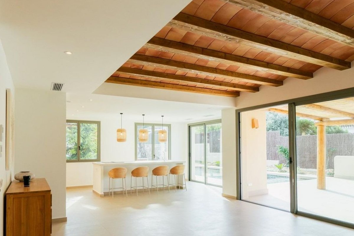 Key Ready Mediterranean Style Villa in Javea with Private Pool and Large PlotExclusive New Build Home in Valle del SolDiscover this stunning key ready villa located in the peaceful Valle del Sol urbanization, just a short drive from Javea town center and only 2.5 km from the popular El Arenal beach. Designed with a blend of Mediterranean and Ibiza influences, the property features soft curved lines, exposed wooden beams and vaulted ceilings that create a warm and authentic atmosphere. Large windows with shutters fill the home with natural light, enhancing the sense of calm and comfort.Elegant Single Level LayoutBuilt on a generous 1000 m2 plot, the villa is distributed on one floor for maximum comfort. It includes a bright living dining area, a fully equipped kitchen, a utility room, three spacious bedrooms with fitted wardrobes, three en suite bathrooms and a guest toilet. Every detail has been thoughtfully selected, with handcrafted natural stone elements and wooden beams that reflect the traditional charm of the Costa Blanca North.Outdoor Spaces Designed for RelaxationThe exterior of the villa offers an ideal setting for enjoying the Mediterranean lifestyle. A beautifully landscaped garden, turquoise swimming pool and sun filled terraces provide the perfect space for dining, entertaining and relaxing throughout the year. The property also includes a pergola with space for two cars, solar panels, dual zone air conditioning, video intercom, alarm system and home automation for lighting.Prime Location in JaveaJavea is one of the most sought after towns on the Costa Blanca North, known for its beautiful beaches, coves, marinas, golf courses, natural parks and excellent gastronomy. Its mild climate and high quality of life attract residents and investors from all over Europe.Key distances from the villa:El Arenal Beach 2.5 kmJavea Port and Marina 6 kmJavea Golf Club 4 kmAlicante Airport 100 kmValencia Airport 125 kmYour Mediterranean Home AwaitsThis villa is the ideal choice for those seeking a permanent residence, a luxury holiday home or a high quality investment. Contact us today to schedule a visit and discover this exceptional property in Javea.~